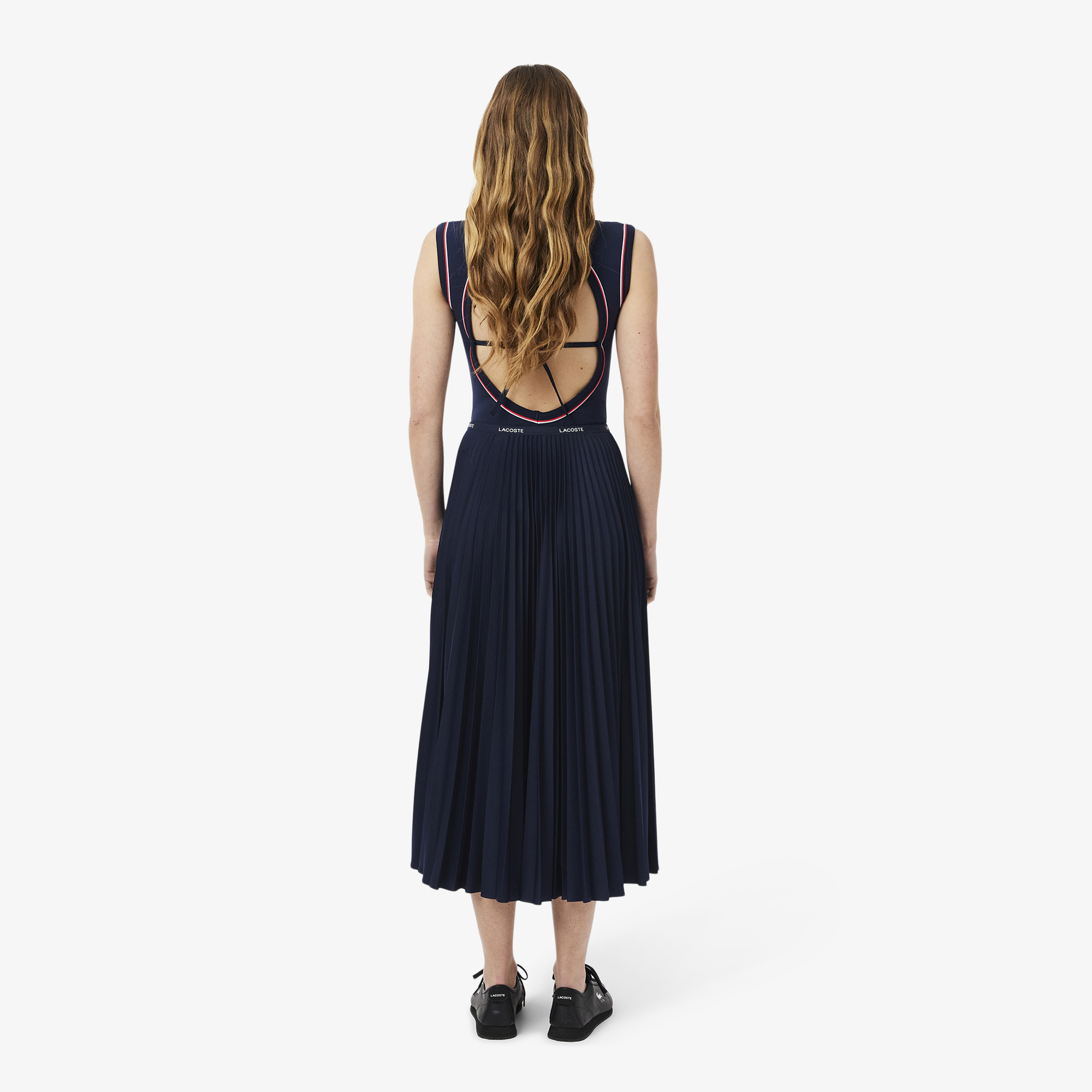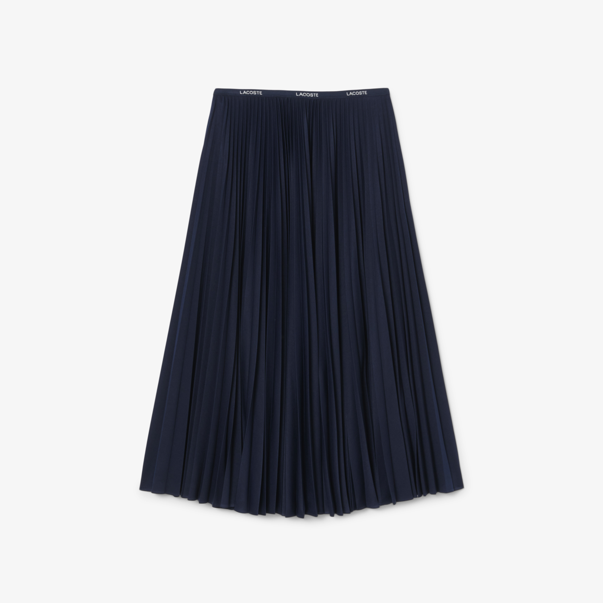 Длинная плиссированная юбка с эластичной талией \ Переработанный полиэфирный трикотаж, ограничивающий использование сырья \ Полностью в складку \ Длина до середины икры \ Эластичный контрастный пояс под брендом Lacoste \ Материал: 100% переработанный пол