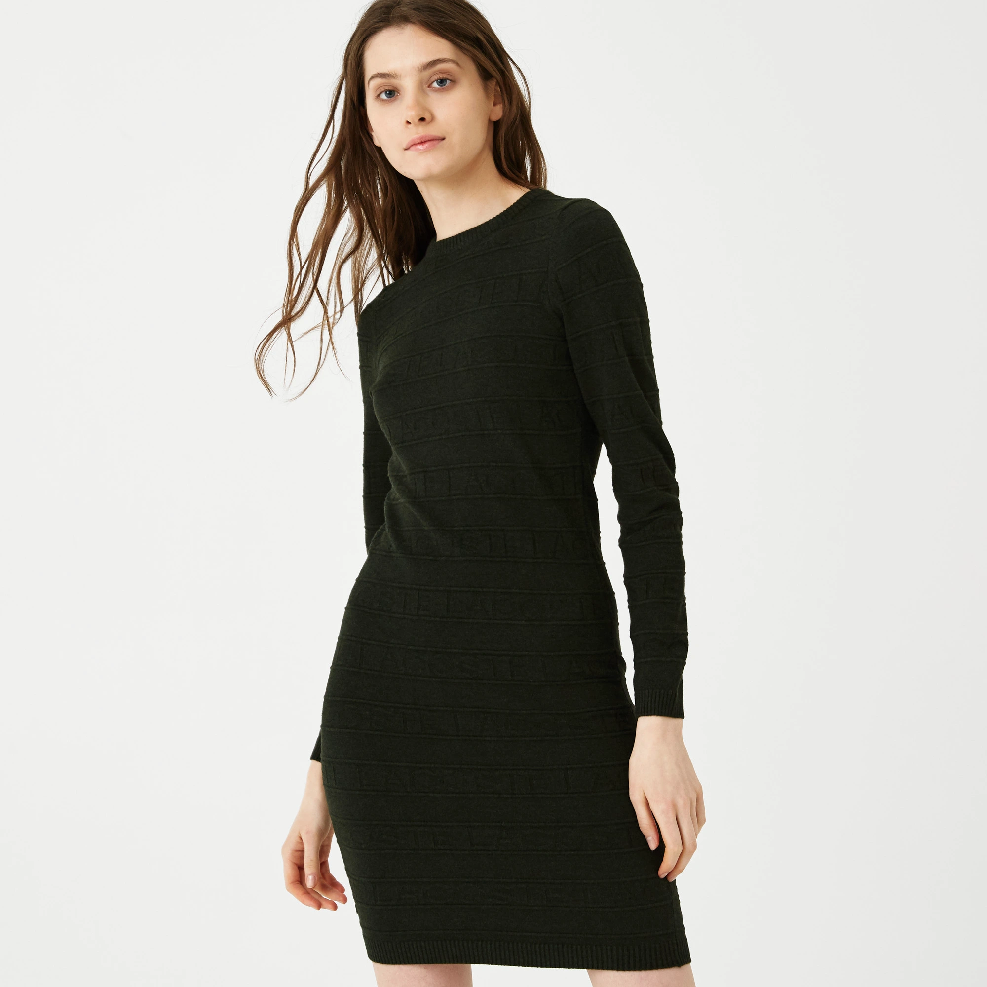 Женское платье Lacoste с длинным рукавом и круглым вырезом