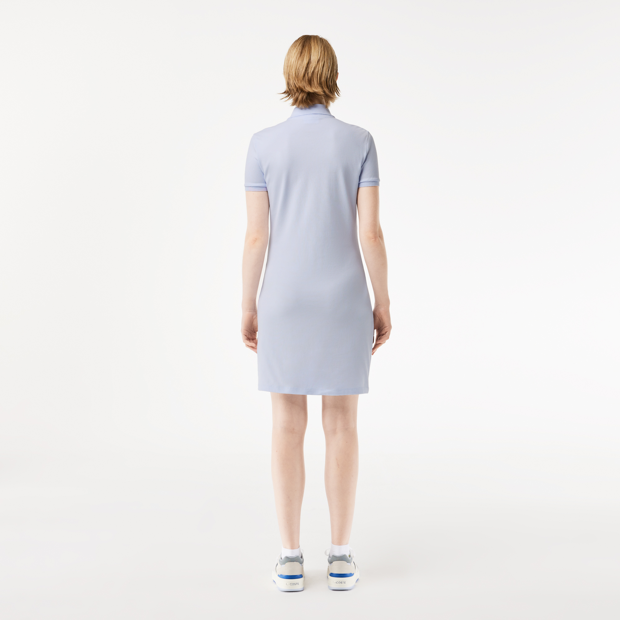Приталенное платье-поло из эластичного пике \ Пике из эластичного хлопка \ Приталенный крой \ Отделка в рубчик на воротнике и рукавах \ Пуговицы из натурального перламутра \ Вышитый логотип на груди \ Если вы колеблетесь между двумя размерами, мы рекоменд