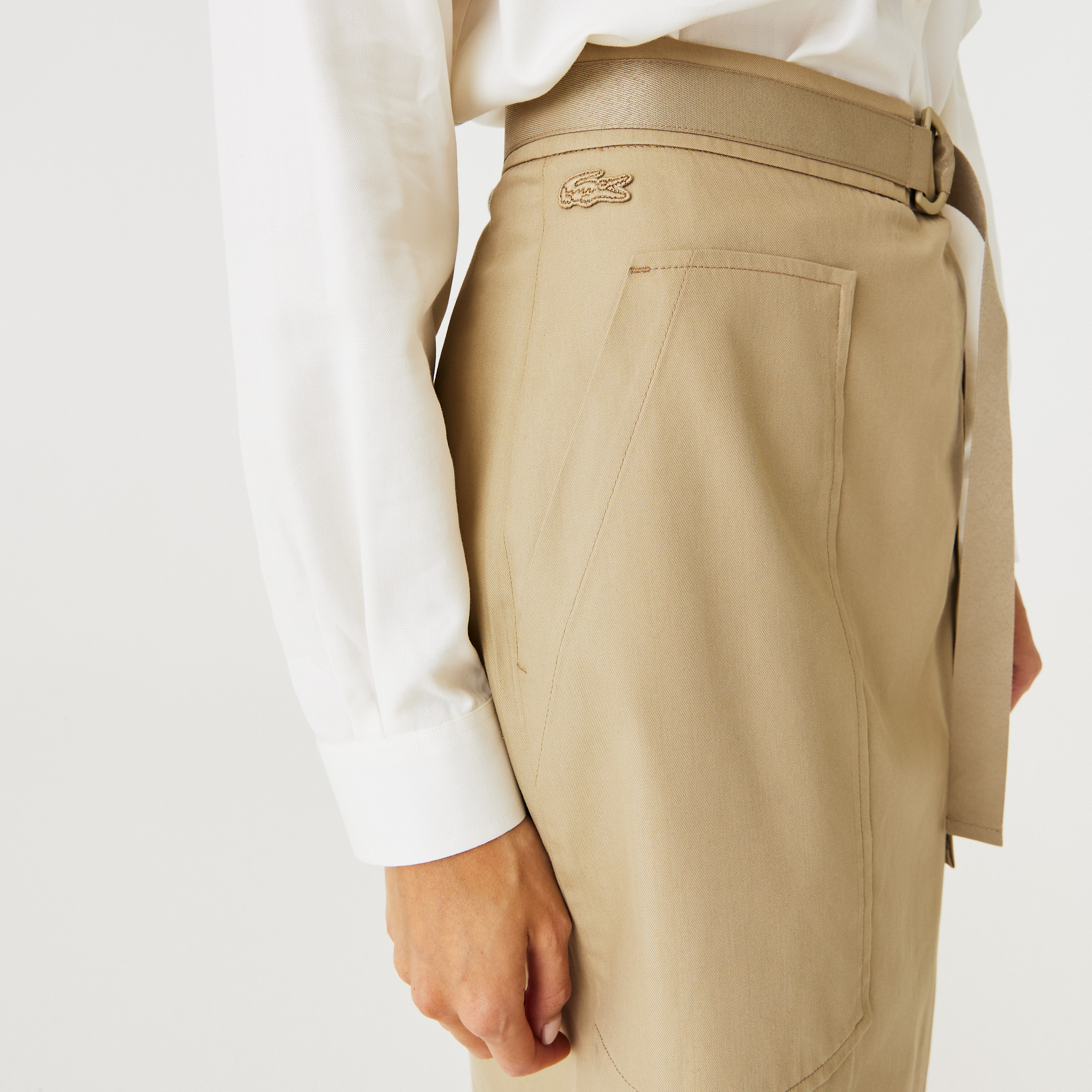 Съемный пояс;\Накладные карманы;\Логотип в тон изделия\Материал: 60% хлопок 40% вискоза\Рост модели 175 см, размер одежды 36