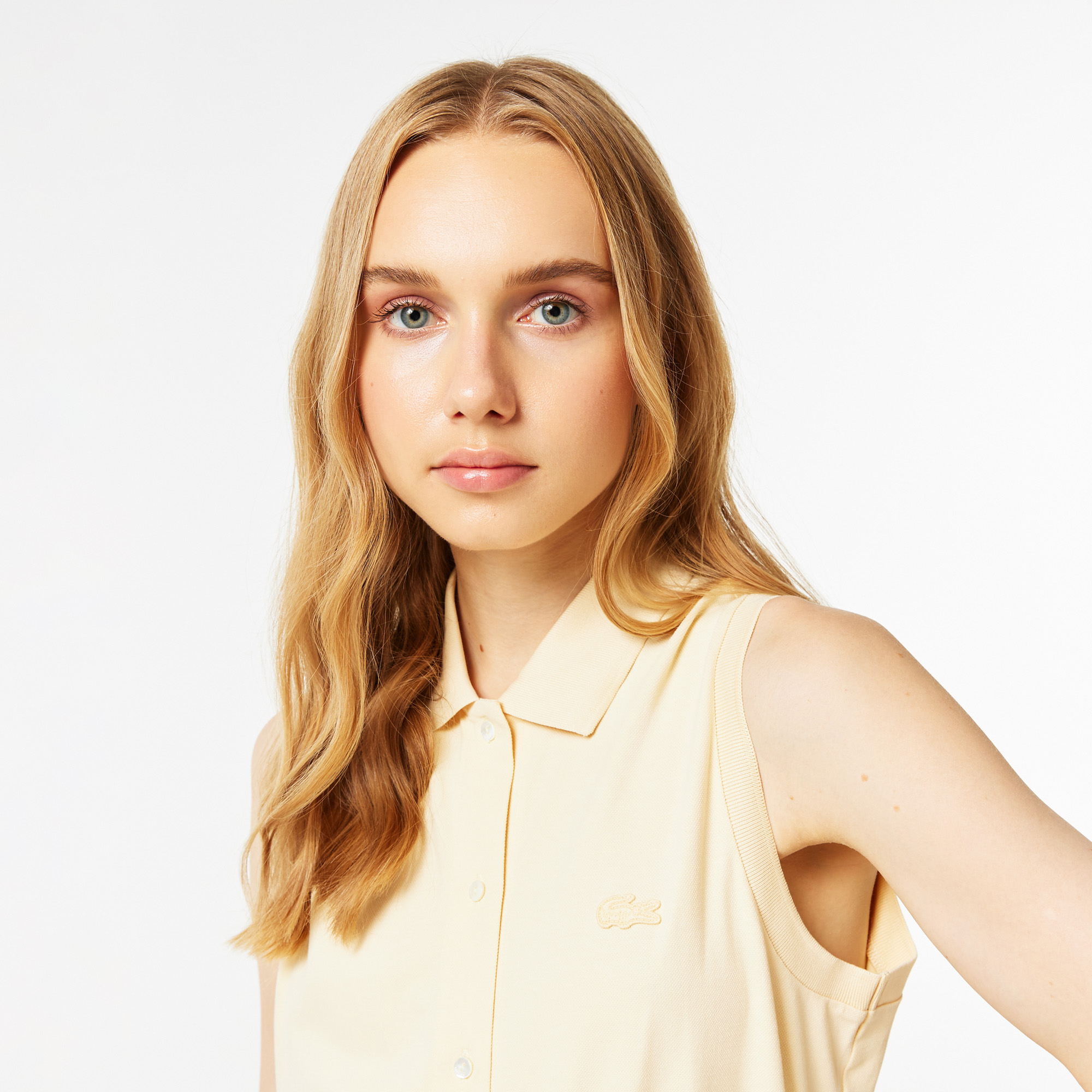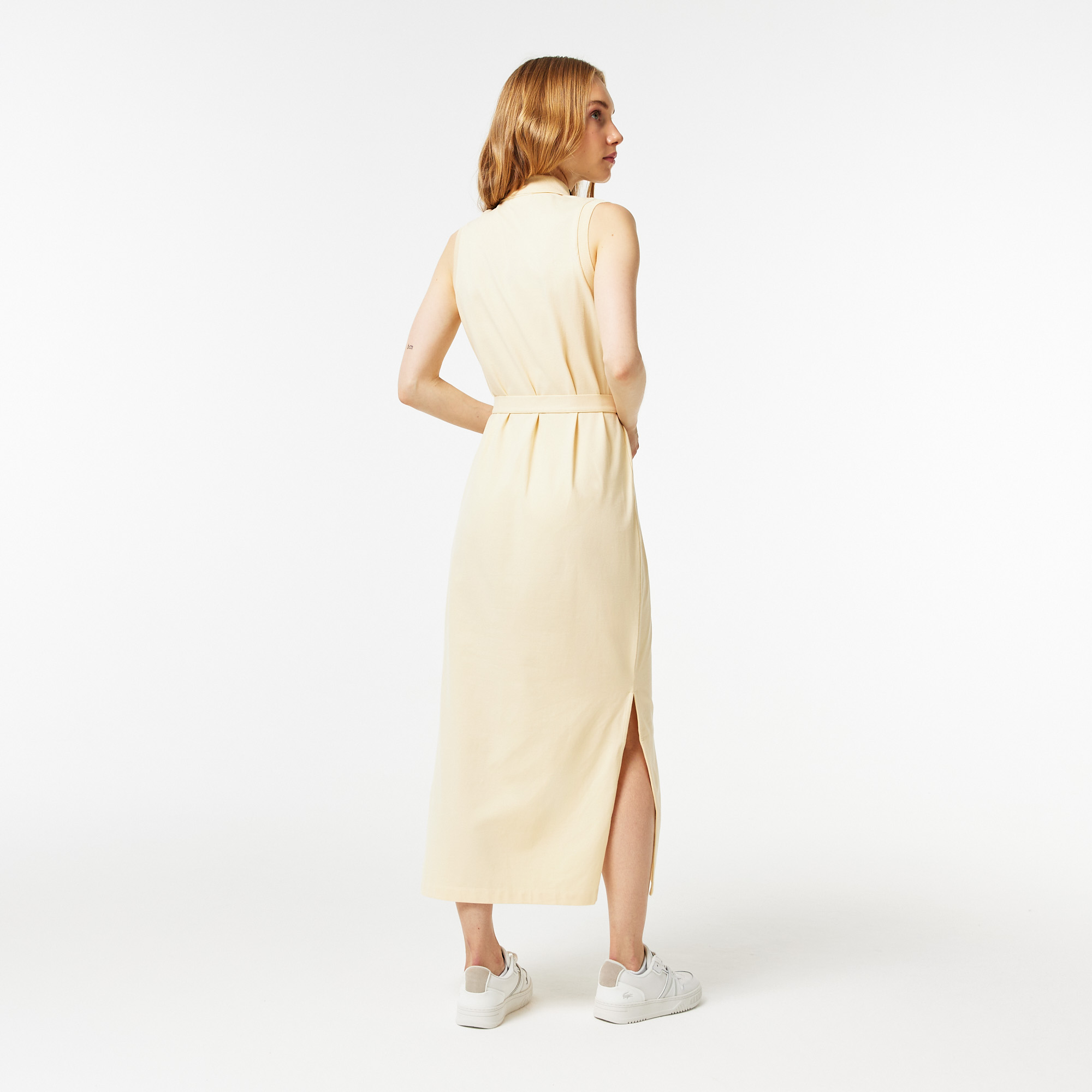 Длинное стрейчевое платье-поло Petit Piqué \ Стрейчевое хлопковое платье-поло \ Обычный прямой крой \ Пояс-завязка на талии \ Пуговицы из натурального перламутра \ Вышитый логотип на груди \ Воротник-поло с застежкой на перламутровые пуговицы\Мини-хлопк