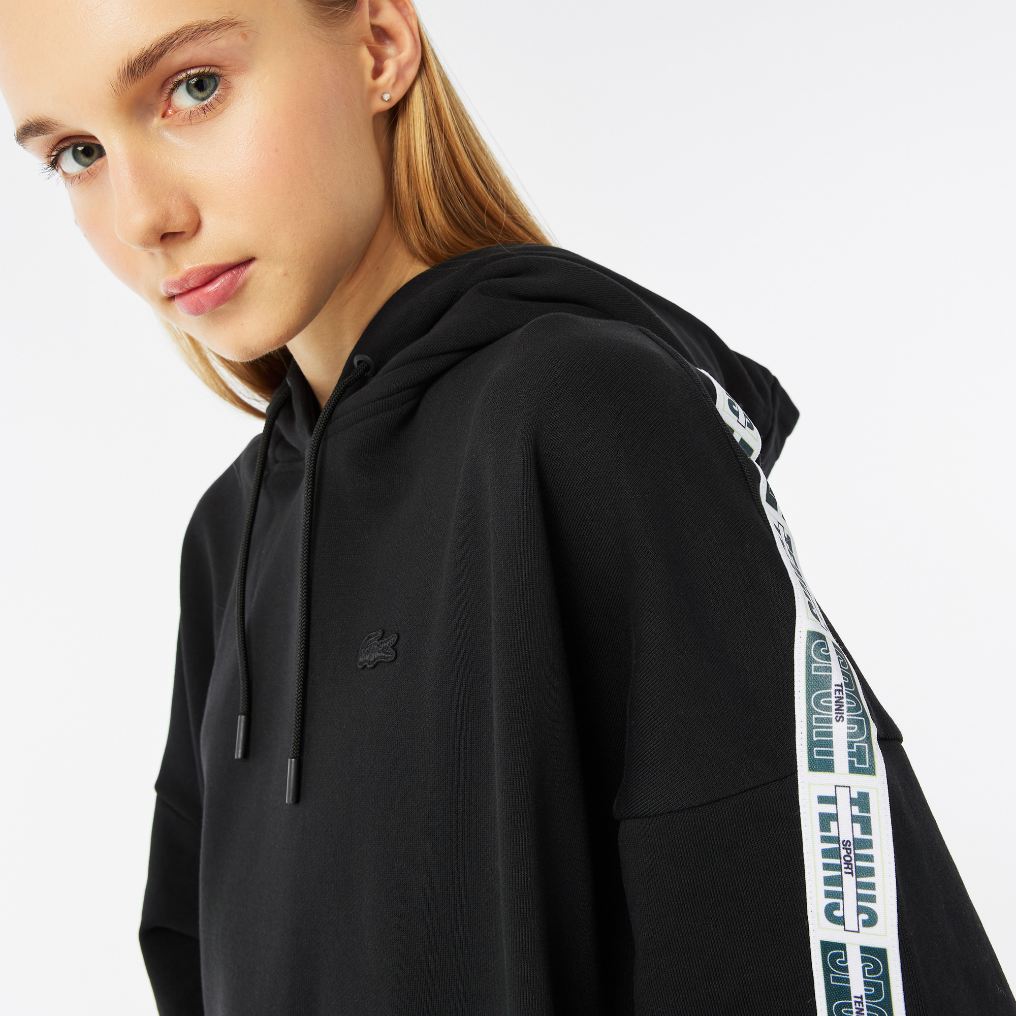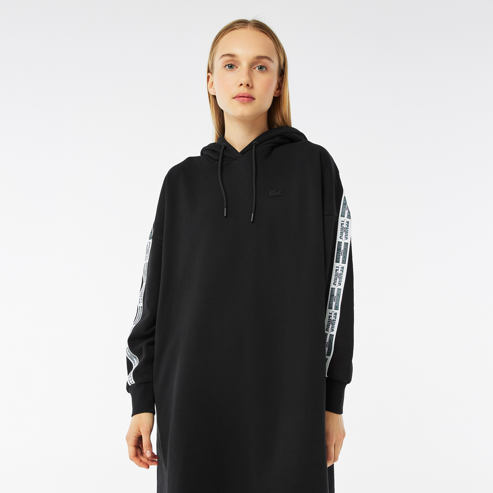 Капюшон с кулиской;\Спущенная линия плеч;\Лента с брендингом на рукавах;\Прорезные карманы сбоку;\Логотип в тон изделия\Материал: 100% хлопок