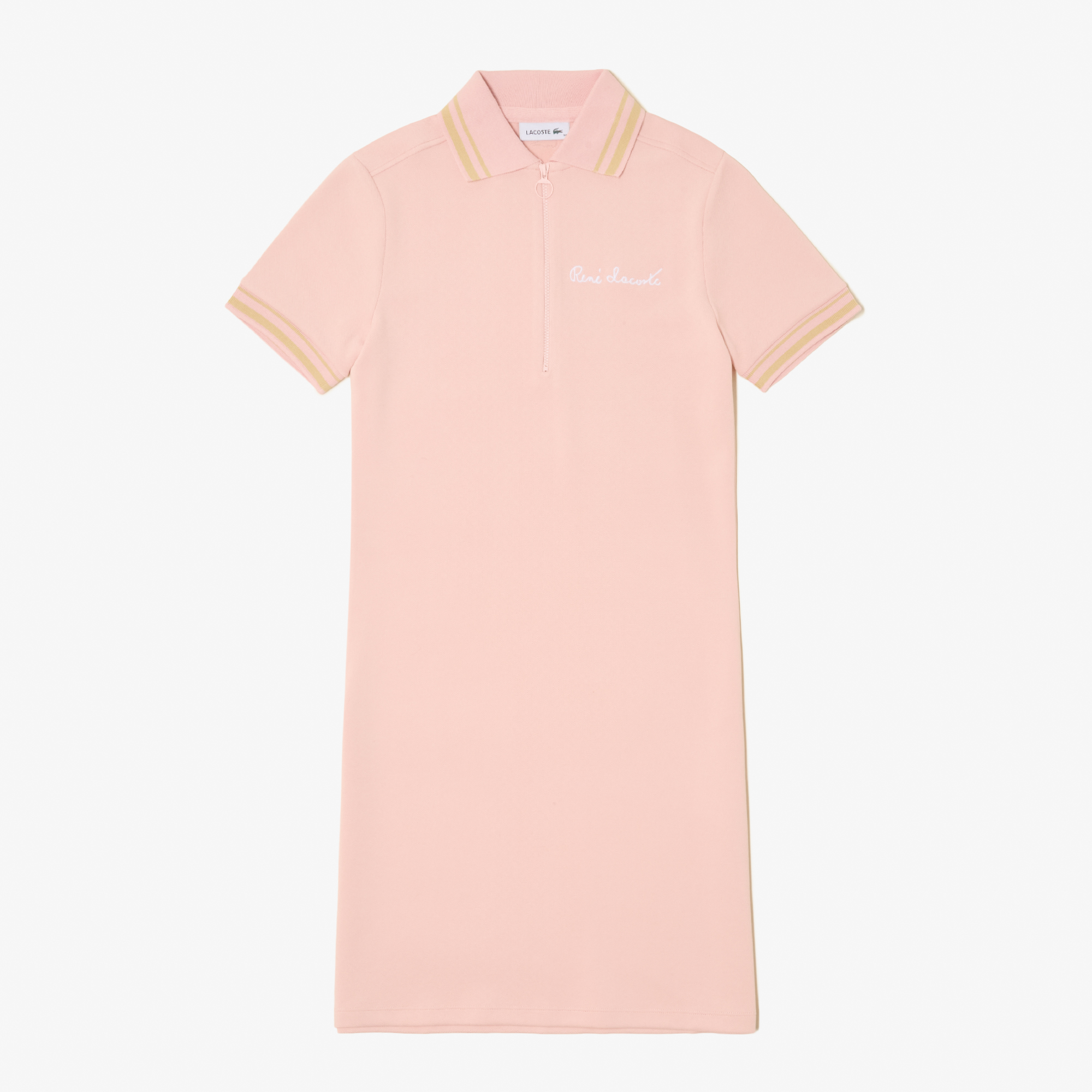 Воротник-поло на молнии\Контрастные полосы на воротнике и манжетах\Надпись "Rene Lacoste" на груди\Логотип на спине\Материал: 97% полиамид 3% эластан\Рост модели 177 см, размер одежды 36