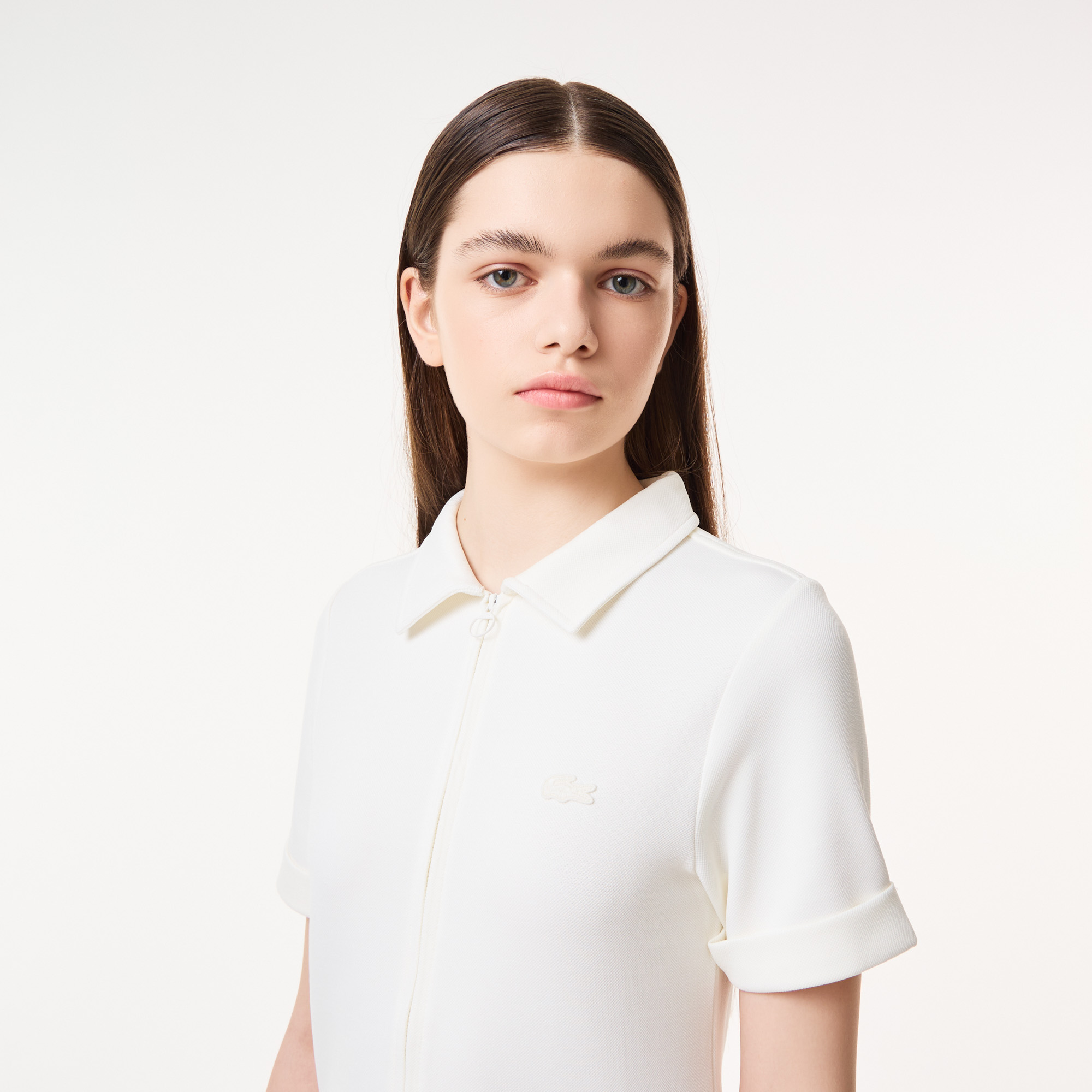 А-силуэт\Воротник-поло\Короткие рукава\На молнии\Прорезные карманы\Логотип в тон изделия\Материал: 97% полиамид 3% эластан\Рост модели 177 см, размер одежды 36