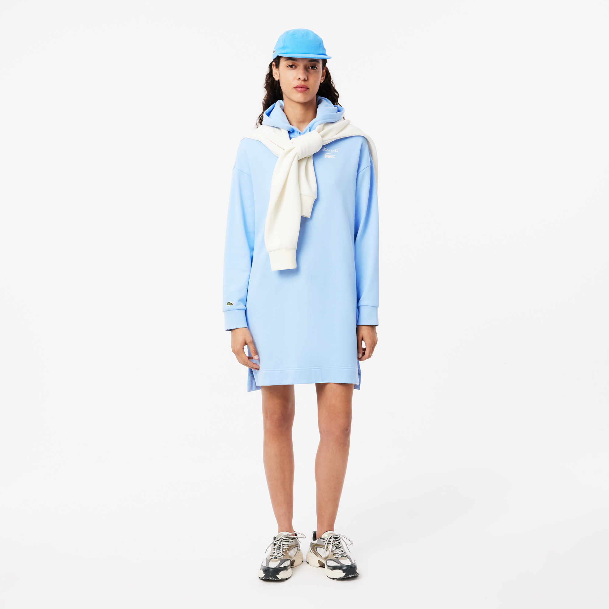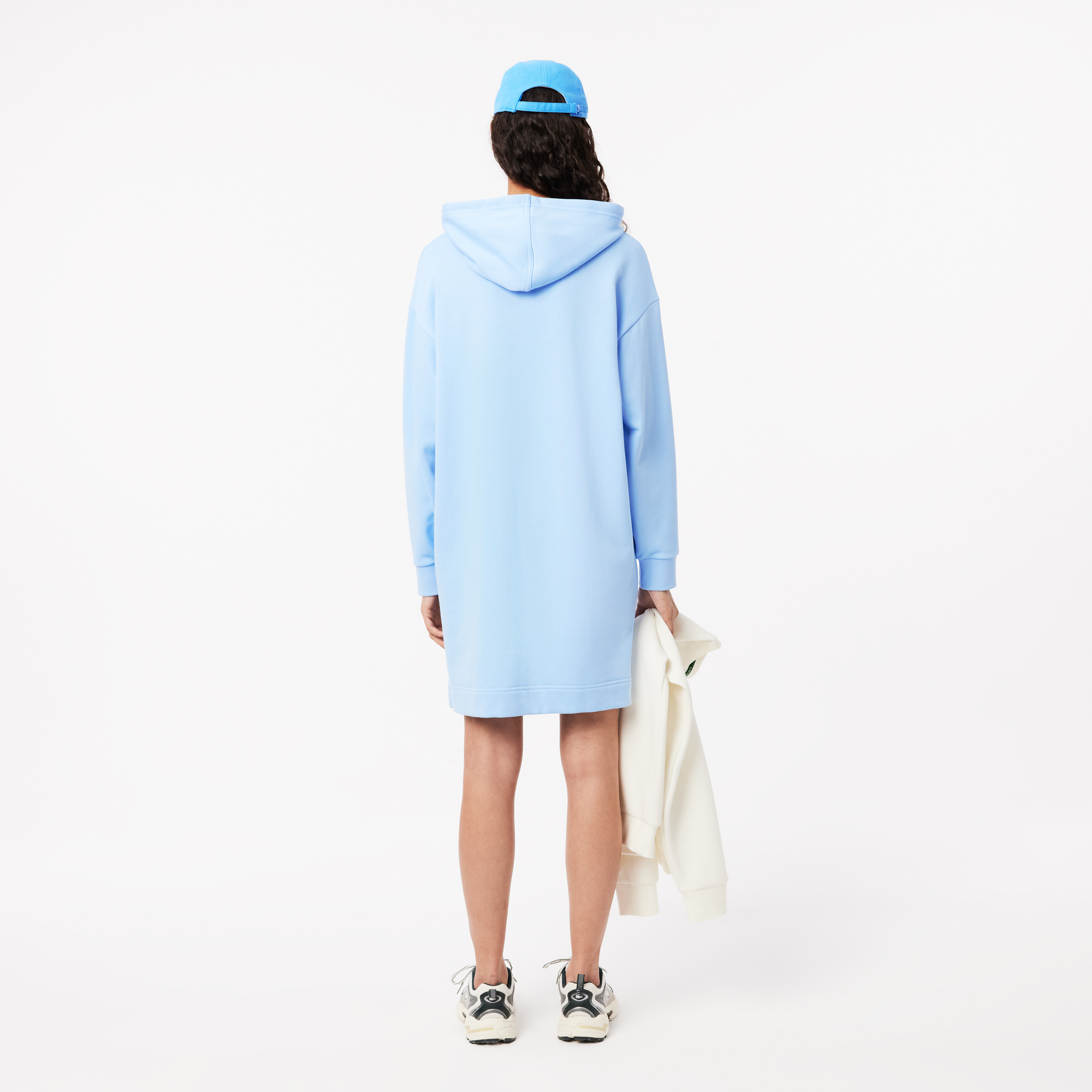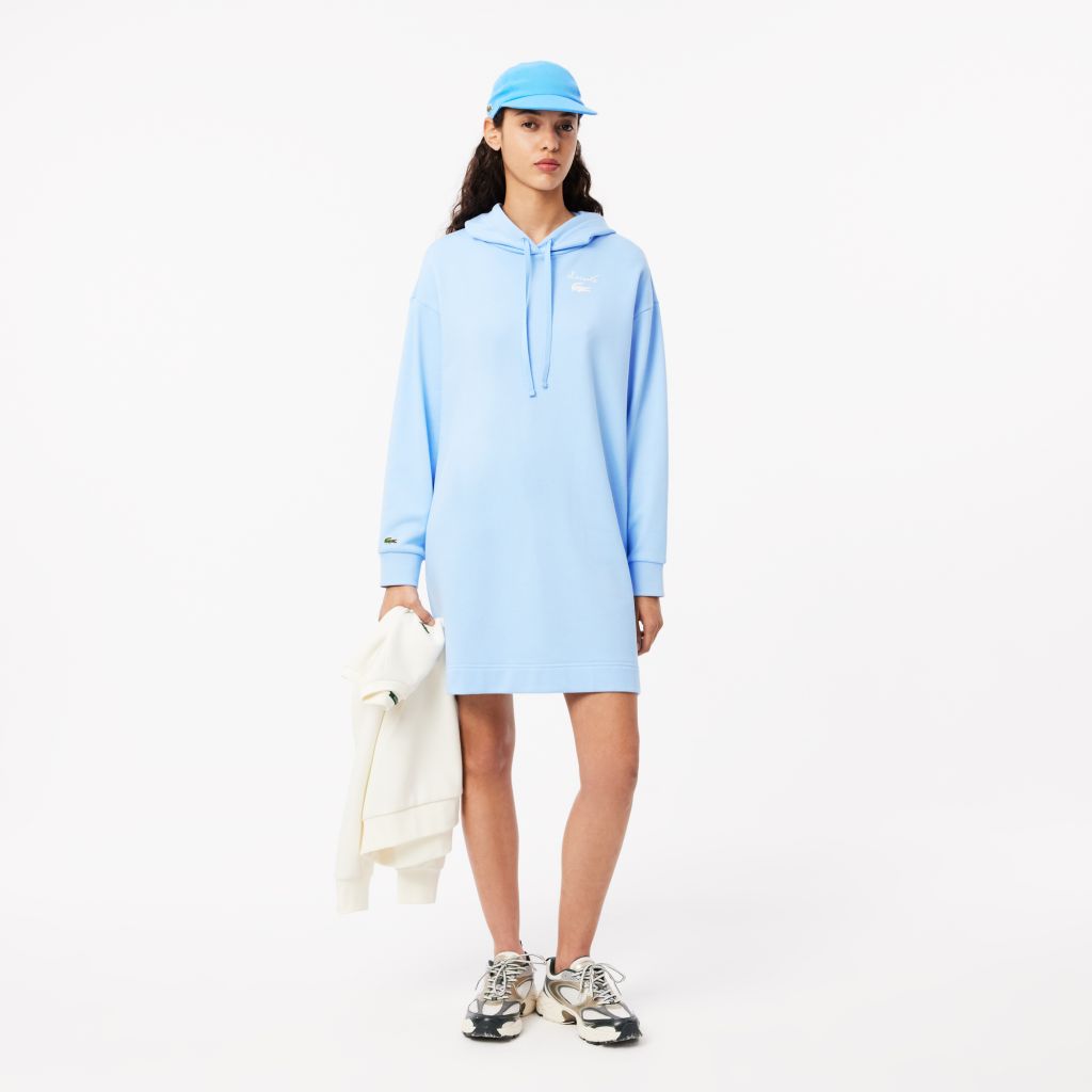 Платье-толстовка из флиса Oversize \ Хлопковый флис без кисточек\ Круглый вырез с регулируемым капюшоном \ Удлиненный сзади \ Логотип из силикона на рукаве \ Хлопковый флис с начесом\спущенная линия плеч\круглый вырез горловины с регулируемым капюшоном\у
