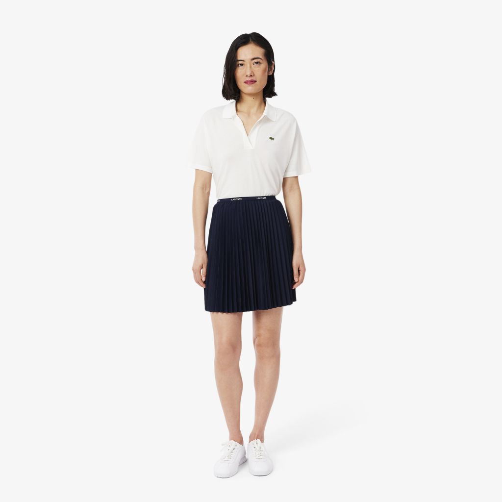 Короткая плиссированная юбка \ Переработанный полиэфирный трикотаж, ограничивающий производство первичных материалов \ Длина: выше колена \ Фирменная эластичная талия Lacoste \ Материал: 100% полиэстер