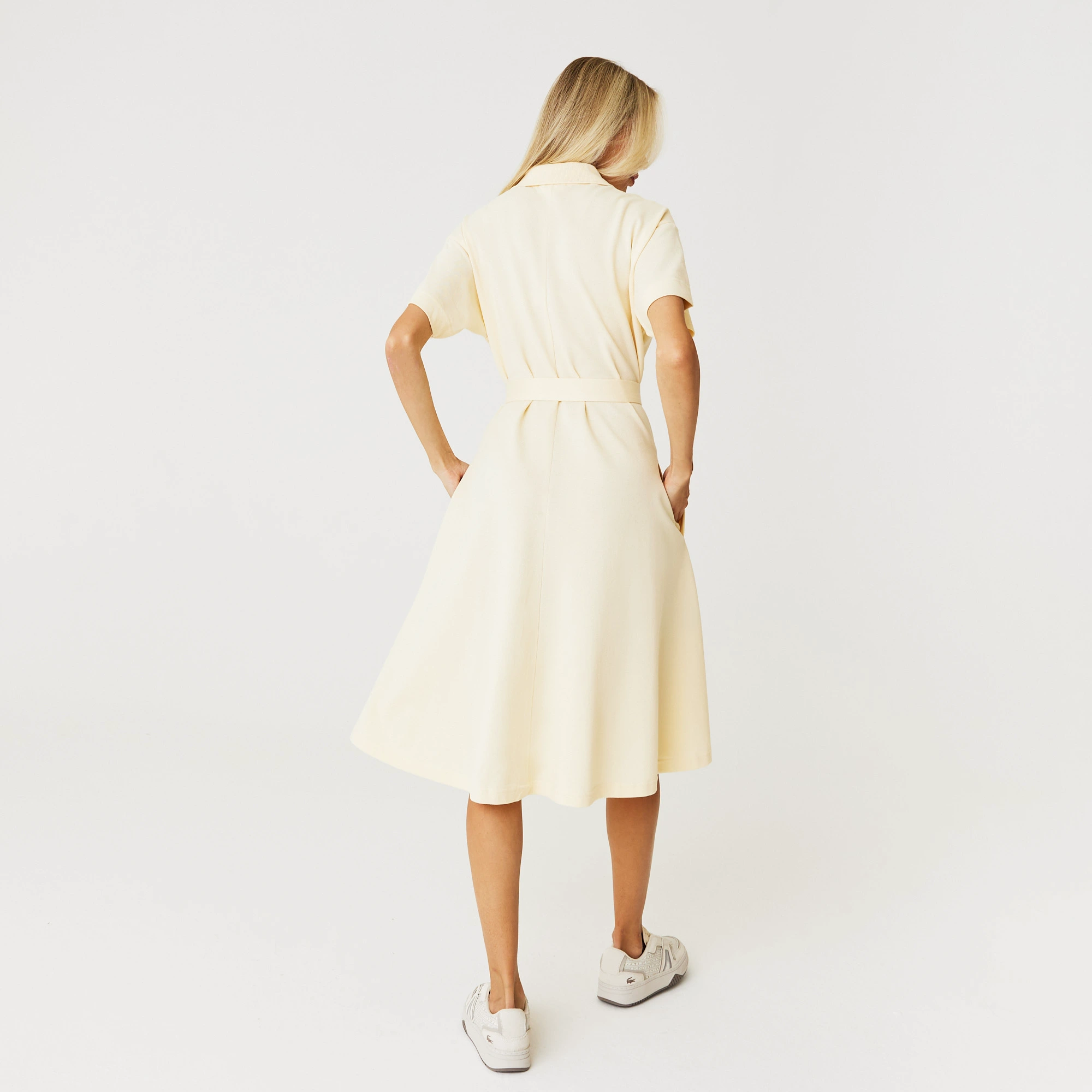 Платье-пике свободного покроя с поясом \ Эластичное, дышащее хлопковое платье-пике