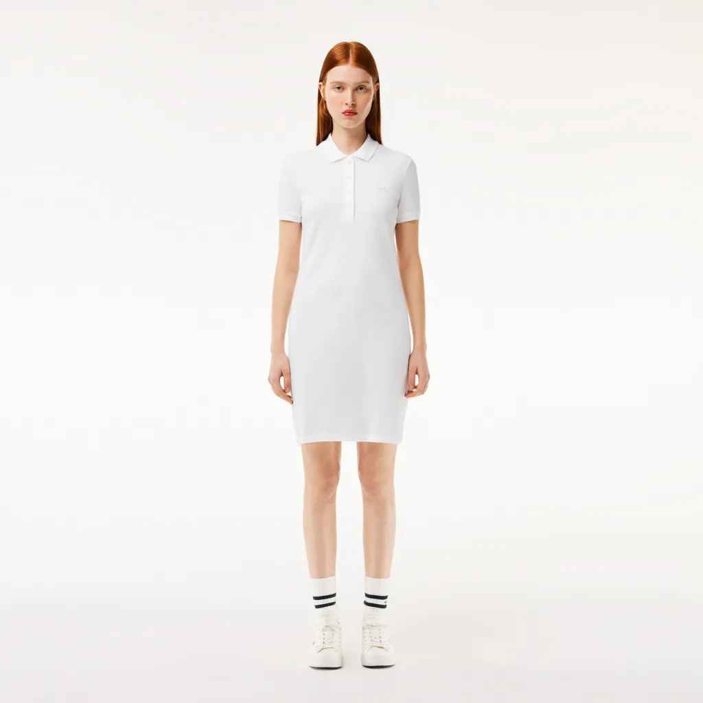 Приталенное платье-поло из эластичного пике \ Пике из эластичного хлопка \ Приталенный крой \ Отделка в рубчик на воротнике и рукавах \ Пуговицы из натурального перламутра \ Вышитый логотип на груди \ Если вы колеблетесь между двумя размерами, мы рекоменд