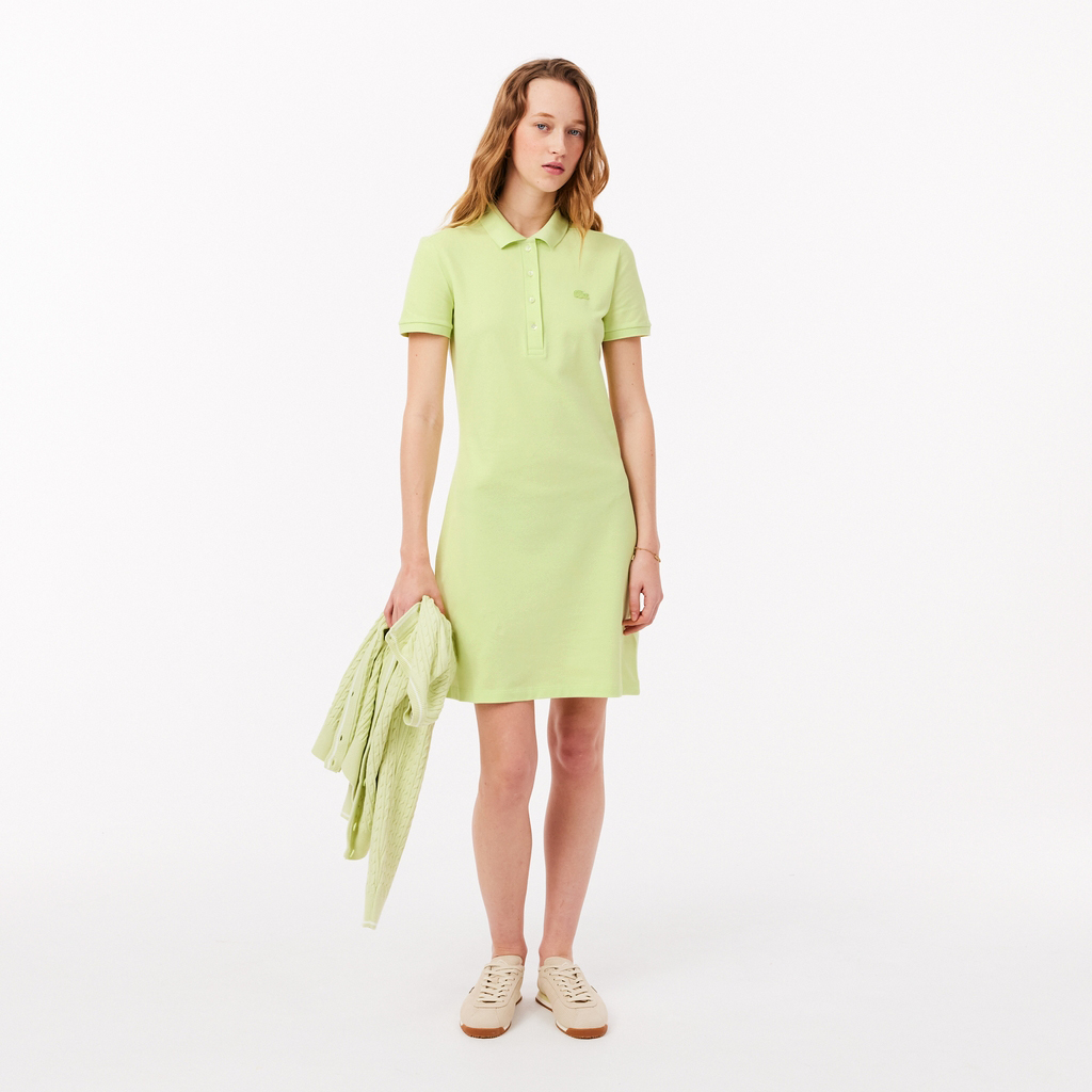 Приталенное платье-поло из эластичного пике \ Пике из эластичного хлопка \ Приталенный крой \ Отделка в рубчик на воротнике и рукавах \ Пуговицы из натурального перламутра \ Вышитый логотип на груди \ Если вы колеблетесь между двумя размерами, мы рекоменд