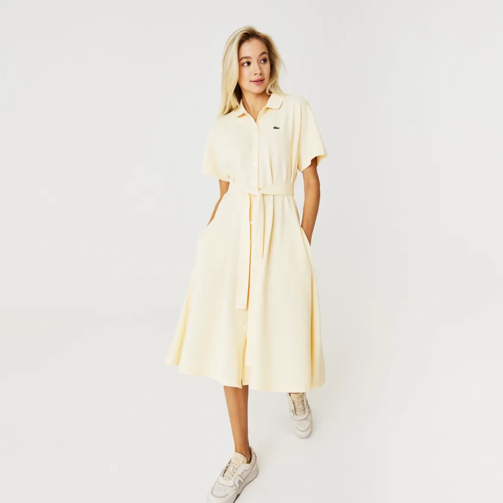 Платье-пике свободного покроя с поясом \ Эластичное, дышащее хлопковое платье-пике