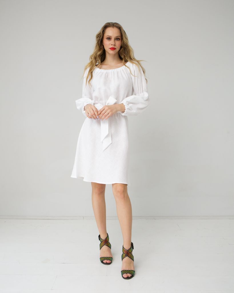 Воздушная элегантность и безупречная чистота — белоснежное льняное платье станет центральным элементом вашего летнего гардероба. Этот утонченный предмет одежды воплощает собой идеальный баланс женственности, комфорта и природной изысканности.Натуральный лен — королевский выбор для жаркого сезона. Он обладает уникальными терморегулирующими свойствами, позволяя коже дышать даже в самый знойный день. Высокая воздухопроницаемость и способность отводить влагу создают ощущение свежести и комфорта в любую погоду. Гипоаллергенная природа льна делает платье идеальным выбором для чувствительной кожи, предотвращая раздражение и дискомфорт.Очаровательный дизайн с рукавами-фонариками добавляет нотку романтичности и винтажного шарма. Свободный силуэт обеспечивает комфорт и свободу движений, а пояс на талии позволяет подчеркнуть фигуру, создавая женственный и гармоничный образ. Универсальный белый цвет символизирует чистоту и свежесть, становясь идеальным фоном для ярких аксессуаров или самостоятельным акцентом в минималистичном стиле.Выбирая женскую одежду из натурального льна, вы инвестируете в качество и экологичность. Это платье не только подарит вам комфорт в жаркую погоду, но и станет долговечным предметом гардероба, который не выходит из моды. Позвольте себе насладиться сочетанием природной красоты и современного стиля — с белоснежным льняным платьем каждый ваш выход станет особенным.