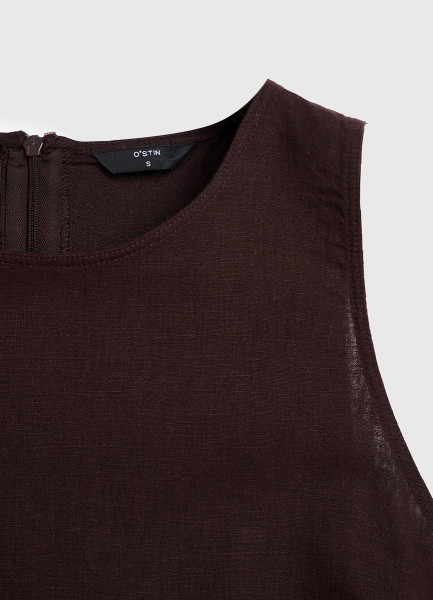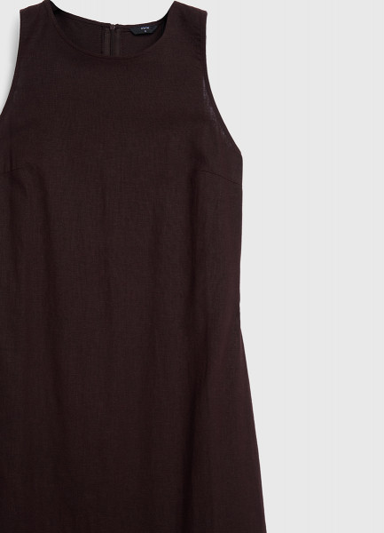 Платье А-силуэта из смесового льна, Коричневый