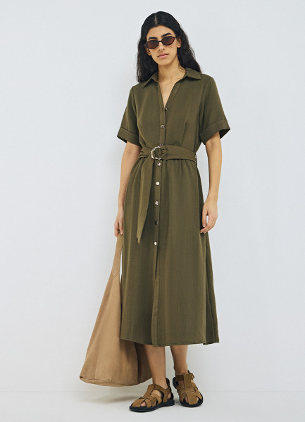 Вязаное платье в рубчик с воротником-стойкой, Коричневый