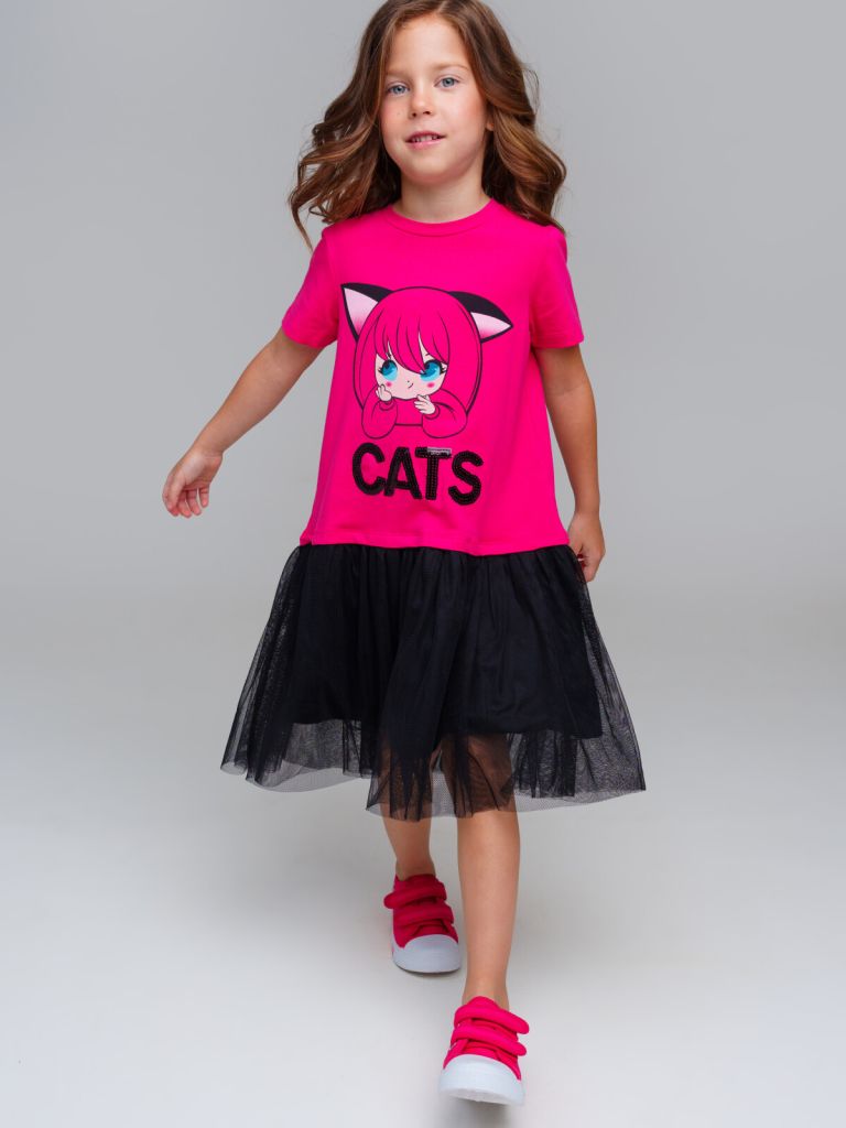 Платье детское для девочки. Нарядное платье с высоким содержанием хлопка. Модель из капсульной коллекции CATS DREAM. Соберите полный образ в едином стиле! Модель выполнена из качественного и приятного на ощупь трикотажа.