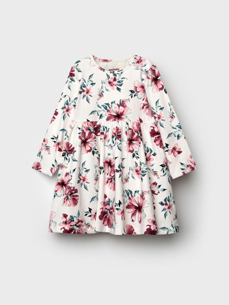 Модное белое платье с цветочным принтом для девочки от PlayToday — это универсальная нарядная одежда в детский сад, для прогулок и ярких праздников.