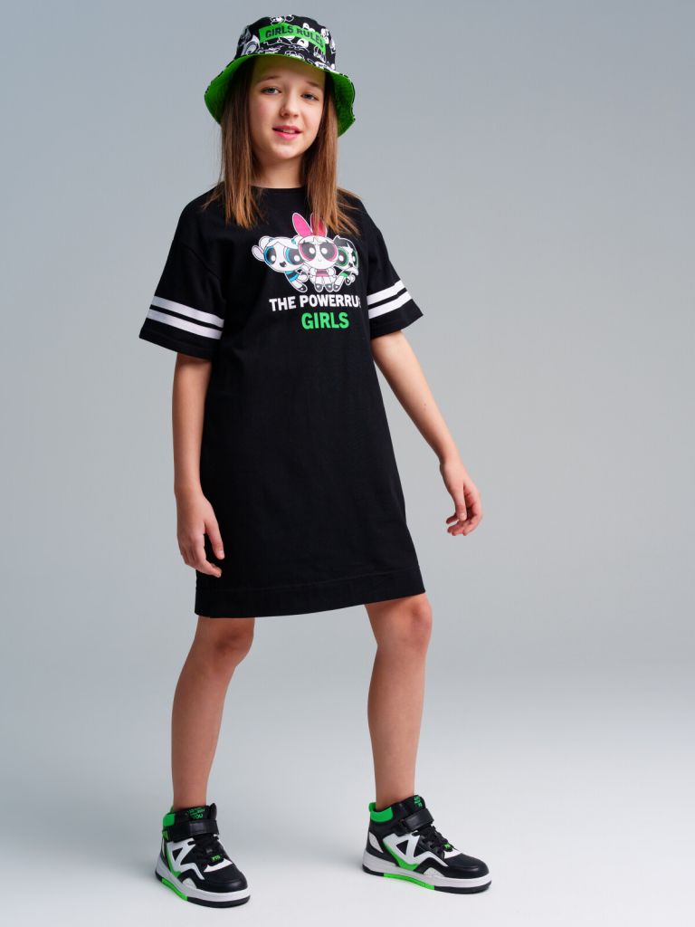 Платье-футболка из качественного и приятного на ощупь трикотажа джерси. Высокое содержание хлопка 95%. Благодаря наличию эластана в составе ткани изделие проще в уходе и держит форму.