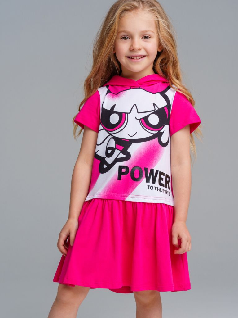 Платье с капюшоном из качественного и приятного на ощупь трикотажа джерси. Высокое содержание хлопка 95%. Благодаря наличию эластана в составе ткани изделие проще в уходе и держит форму.