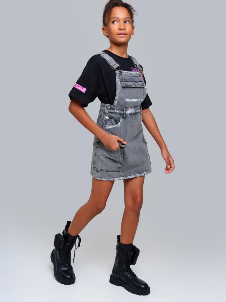 Джинсовый сарафан для девочки подростка. Джинсовый сарафан из эластичного денима. Посадка regular fit – классический крой. Регулируемые по длине лямки. Пояс на резинке с утяжкой, застежка на кнопки. Функциональные карманы. Модель выполнена из качественного и плотного текстиля.