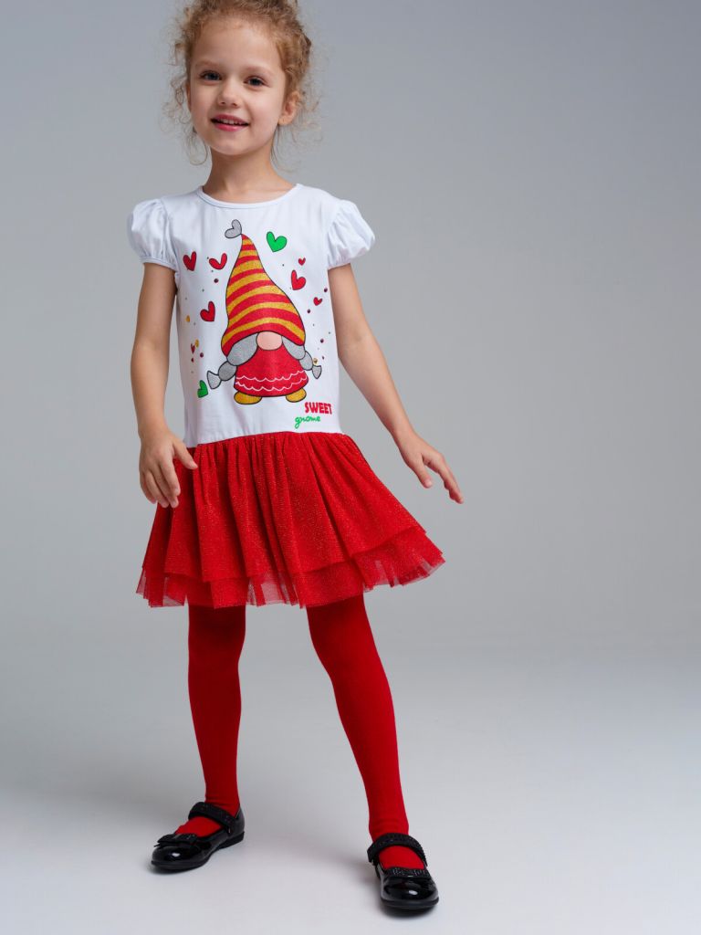 Платье трикотажное с юбкой из мягкой сетки. Верх платья из трикотажа с высоким содержанием хлопка 95%. Благодаря наличию 5% эластана в составе ткани изделие держит форму.