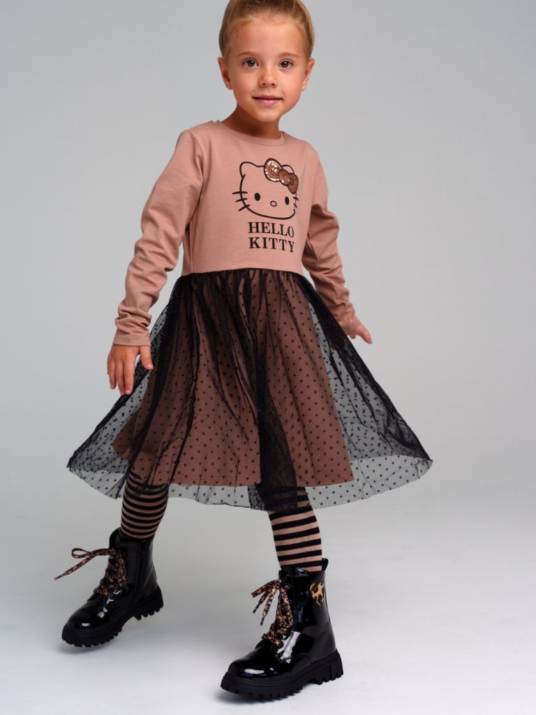 Платье трикотажное с юбкой из мягкой сетки. Верх платья из трикотажа с высоким содержанием хлопка 95%. Благодаря наличию 5% эластана в составе ткани изделие держит форму.