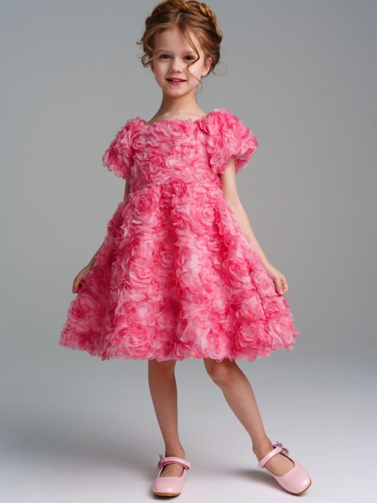 Платье нарядное из поплина. Легкое, воздушное и комфортное. Декорировано цветами из сетки. Застежка на потайную молнию.