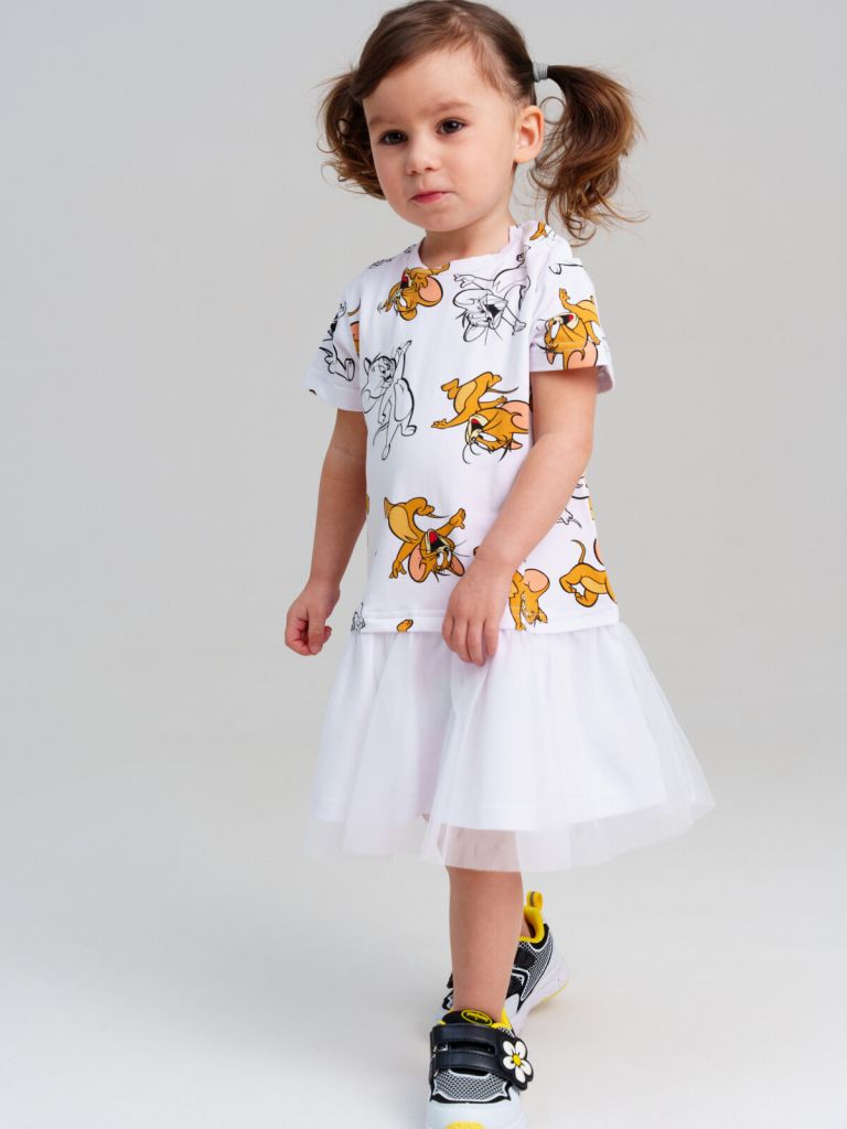 Платье детское для девочки. Платье с высоким содержанием хлопка 95% для малыша. Благодаря наличию эластана в составе ткани изделие проще в уходе и держит форму. Юбка выполнена из двух слоев однотонной сетки на подкладе. Модель выполнена из качественного и приятного на ощупь трикотажа.