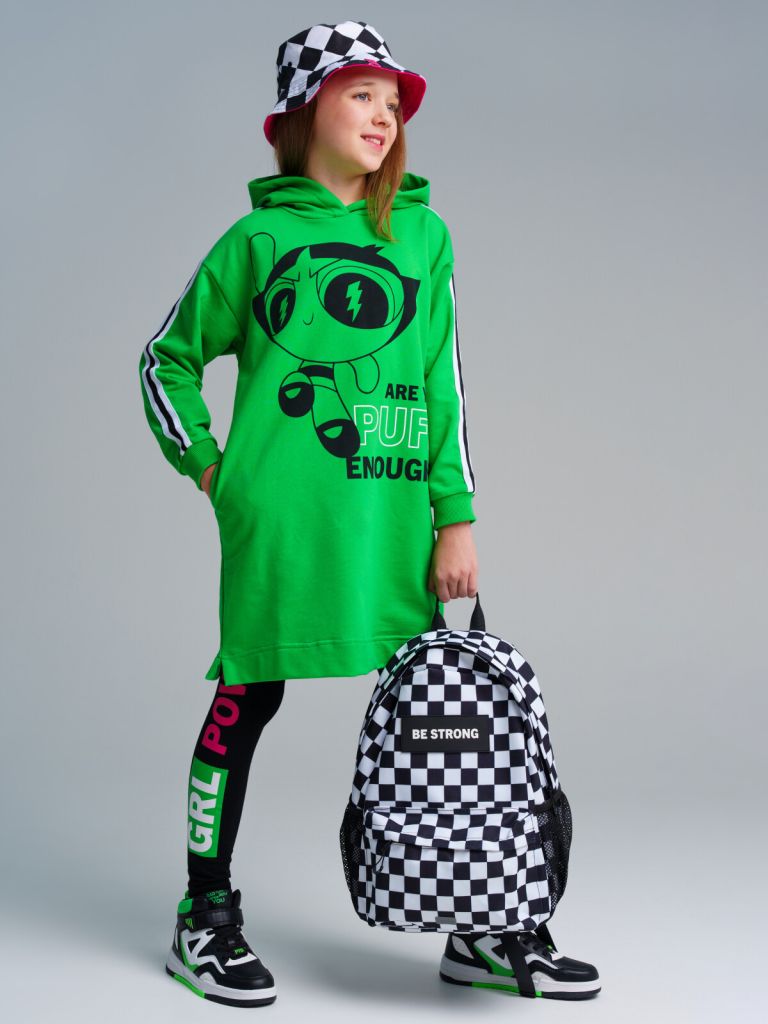 Платье из french terry с капюшоном. Манжеты в эластичный рубчик.