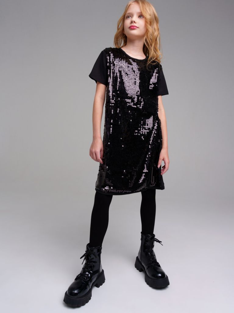 Платье из качественного и приятного на ощупь трикотажа джерси. Высокое содержание хлопка 95%. Благодаря наличию эластана в составе ткани изделие проще в уходе и держит форму. Прямой силуэт. Верх из сетки.