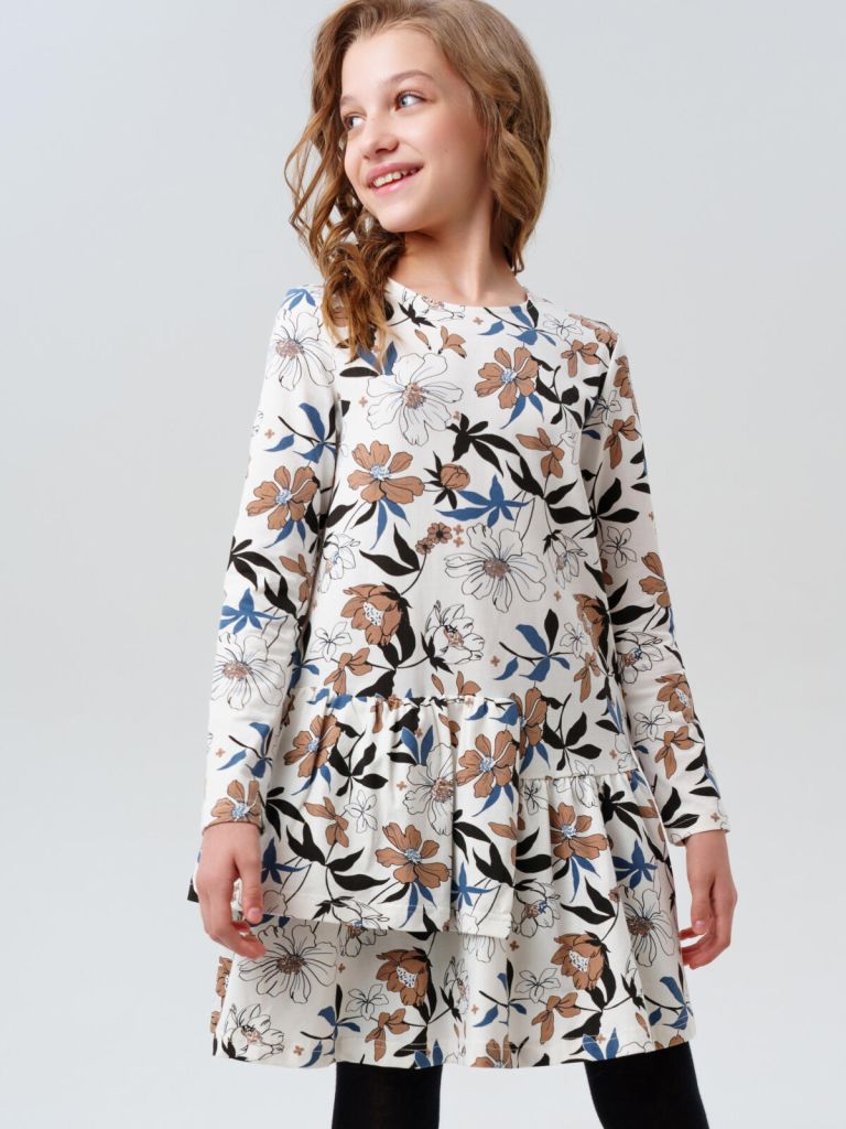 Трикотажное нарядное платье от PlayToday для девочки подростка — стильная модель с воланами и ярким принтом, которая станет любимой вещью в гардеробе.