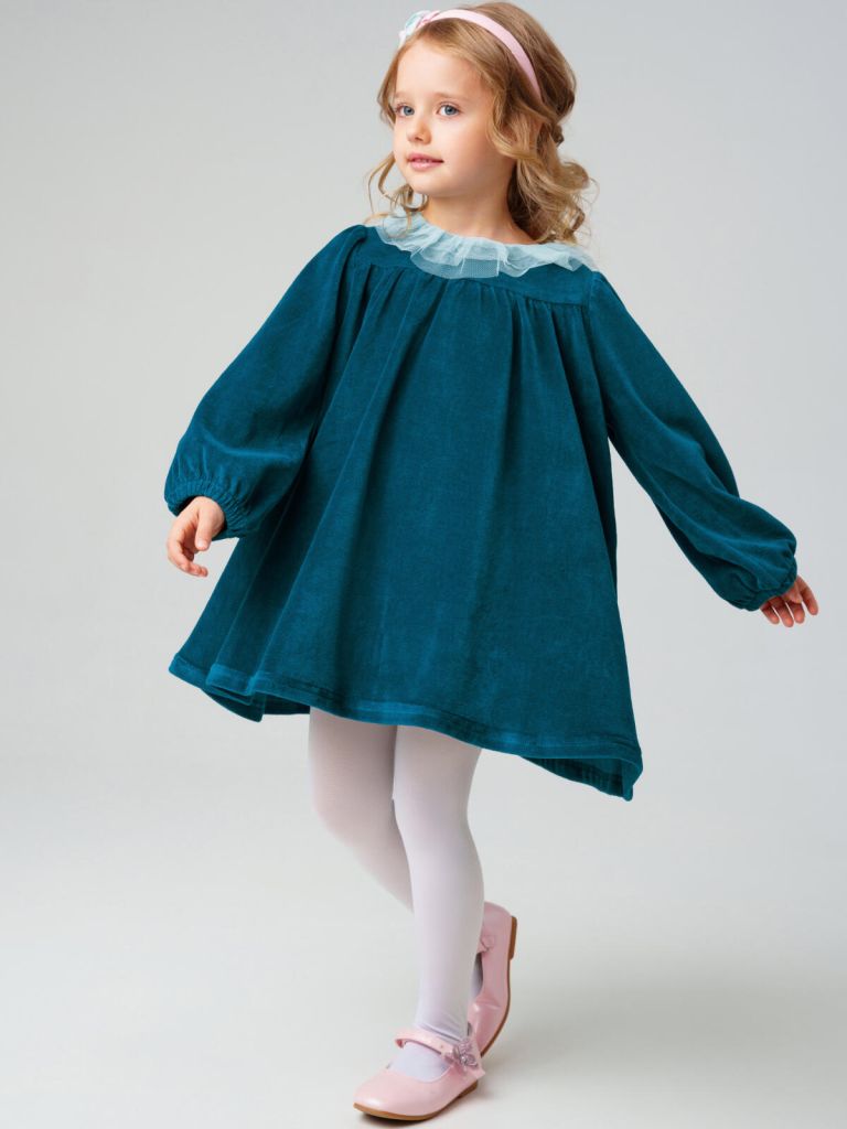 Платье PlayToday из велюра с фатиновым воротником — нежный образ для маленькой модницы, где сочетаются комфорт, стиль и праздничное настроение.