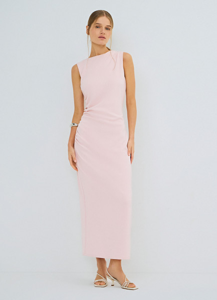 Трикотажное платье со сборками, Розовый