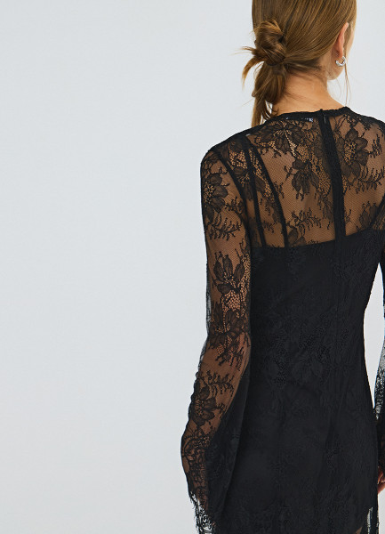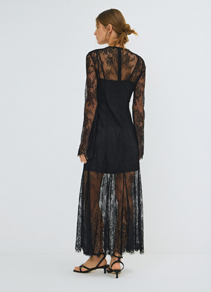 Вязаное платье в рубчик с воротником-стойкой, Черный