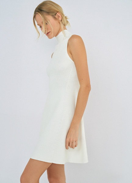 Вязаное платье в рубчик с воротником-стойкой, Черный