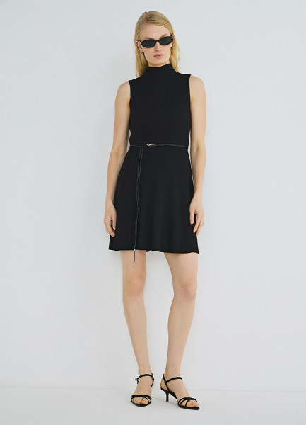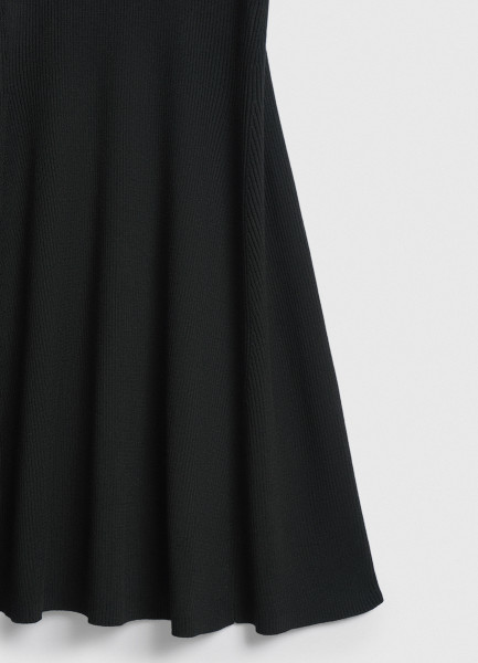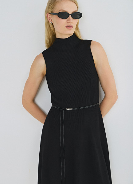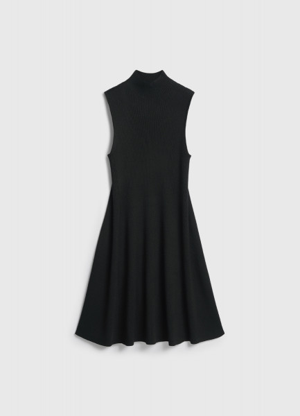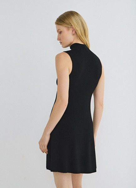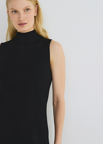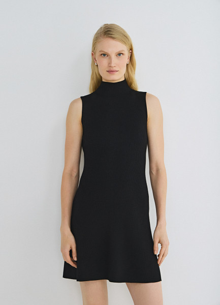 Вязаное платье в рубчик с воротником-стойкой, Черный