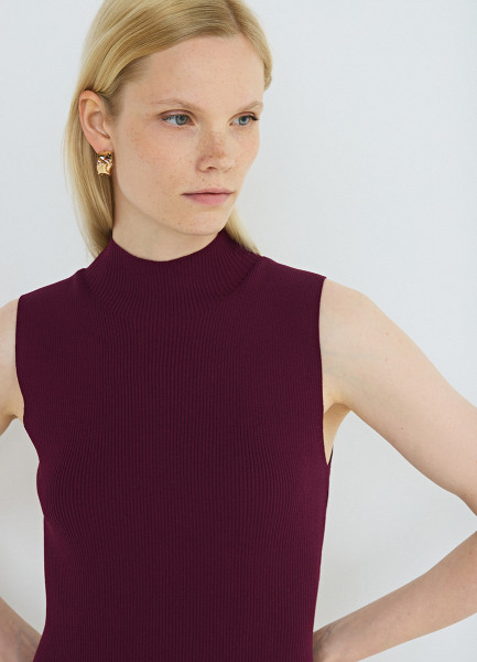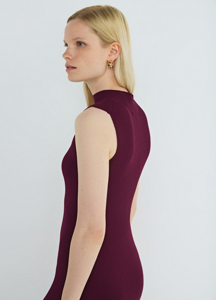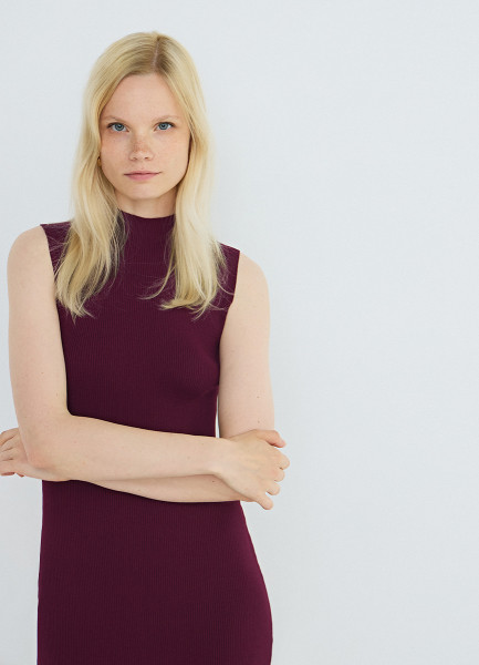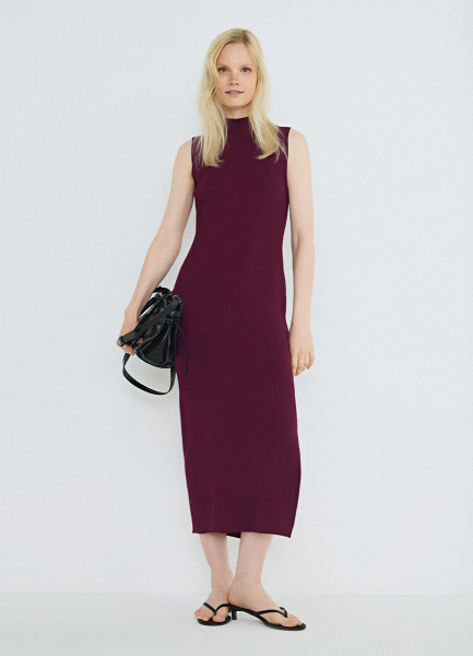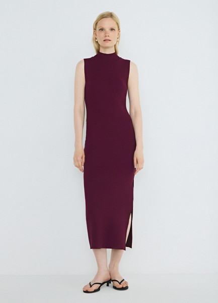 Вязаное платье в рубчик с воротником-стойкой, Фиолетовый