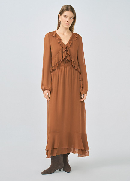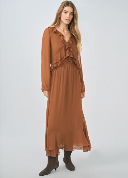 Платье с воланами и завязками, Оранжевый
