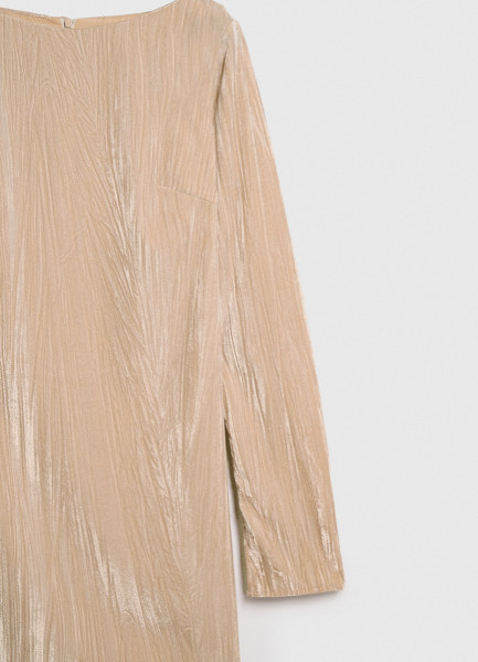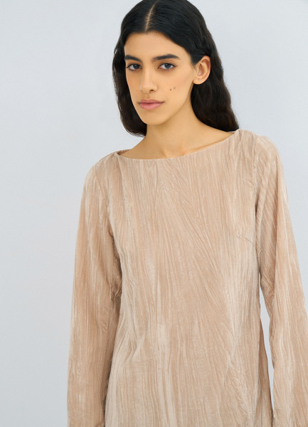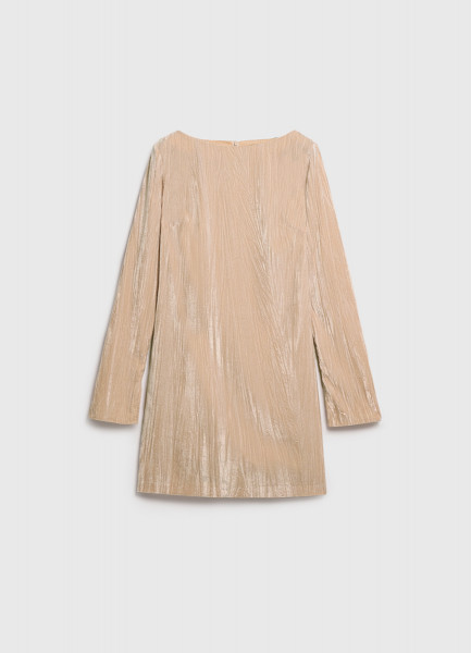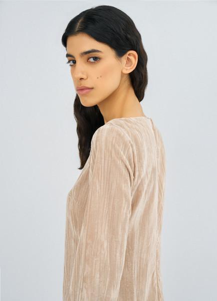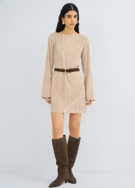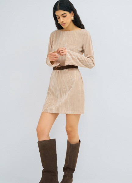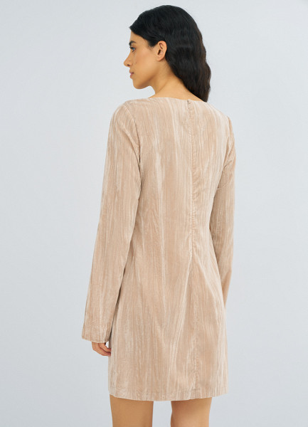 Платье мини из жатого бархата, Бежевый