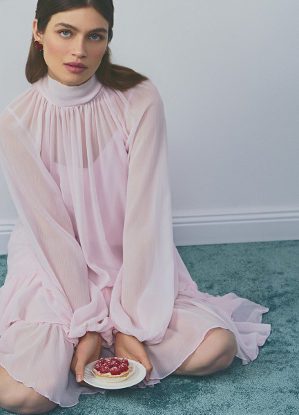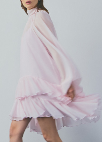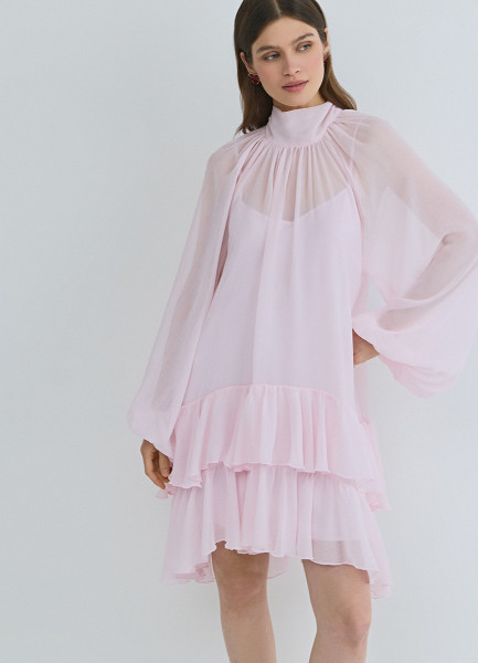 Платье мини с рюшами, Розовый