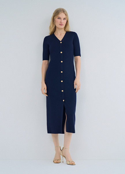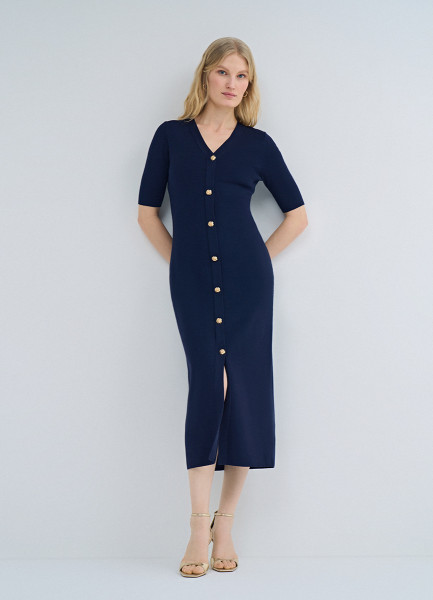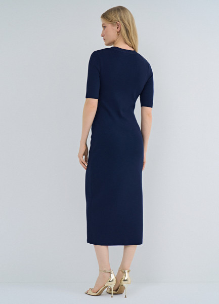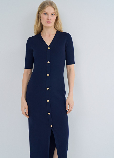 Вязаное платье с V-вырезом, Синий