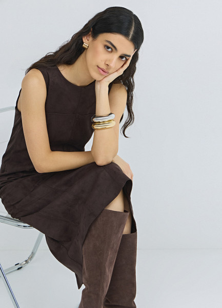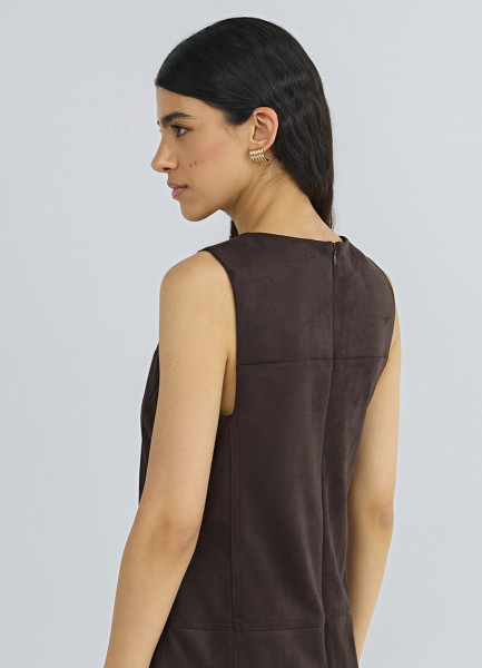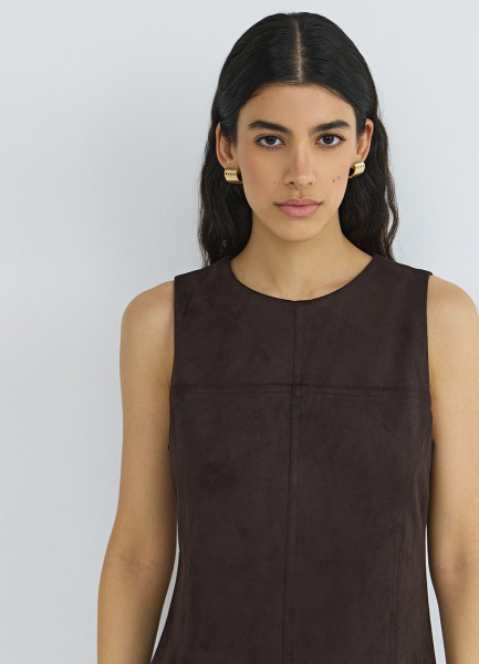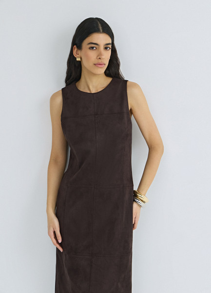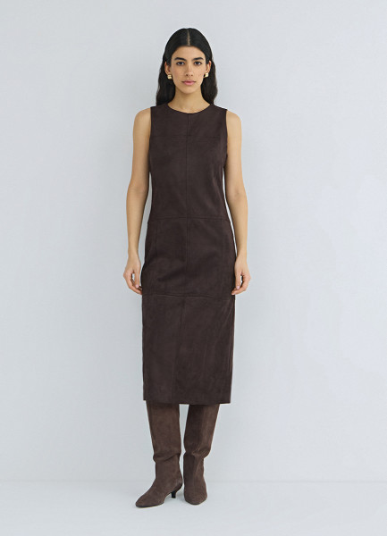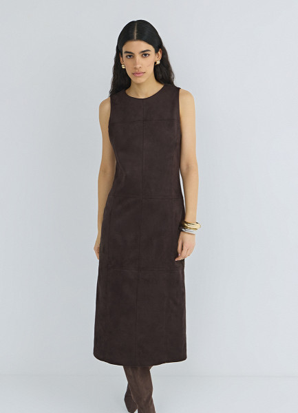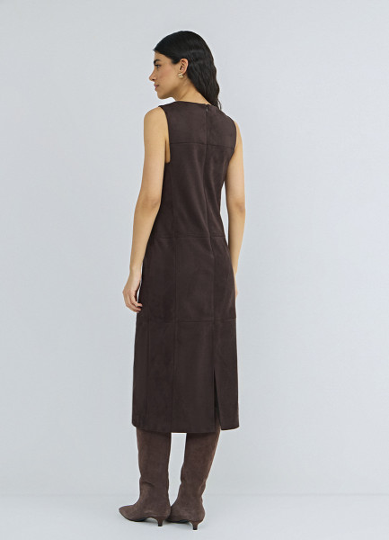 Платье миди из искусственной замши, Коричневый