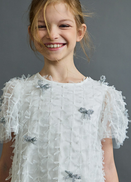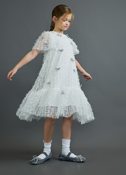 Платье с бантиками для девочек, Белый