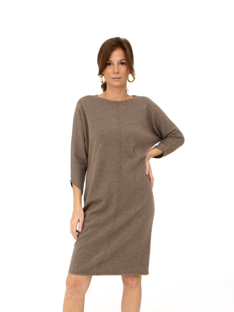 Элегантное платье из чистого кашемира в цвете капучино — идеальный выбор для женщин, ценящих комфорт и стиль. Мягкая ткань из 100% кашемира обеспечивает невероятную мягкость и тепло, создавая ощущение уюта даже в прохладные дни. Длина платья до колена и рукава 3/4 делают его универсальным для любого сезона и повода.
