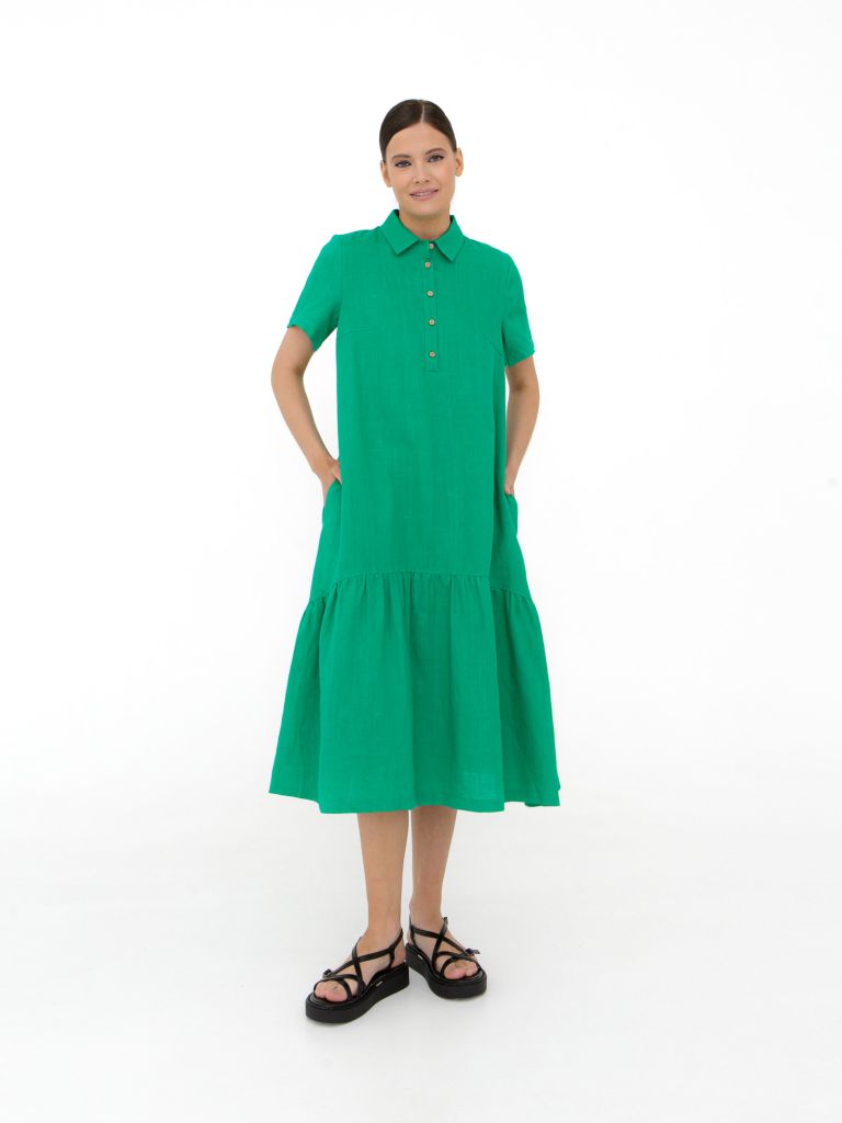 Это платье выполнено из льна - прекрасного материала для летней одежды, так как он легкий, дышащий и приятный на ощупь. Платье имеет простой и элегантный прямой крой, который обеспечивает комфорт и свободу движения. Цвет платья - светло-зеленый, свежий и яркий, отлично подходит для летнего сезона и добавит красок в ваш гардероб. Кроме того, цвет платья легко сочетается с другими предметами одежды и аксессуарами. Текстура платья легкая и приятная на ощупь, что делает его идеальным выбором для жаркой погоды. Льняные волокна обеспечивают хорошую вентиляцию, что позволяет коже дышать и чувствовать себя комфортно в течение всего дня. В целом, это прекрасный выбор для тех, кто ищет легкое, стильное и удобное платье для летнего сезона. Сочетание простого кроя, свежего цвета и легкой текстуры делает его универсальным и подходящим для различных случаев.