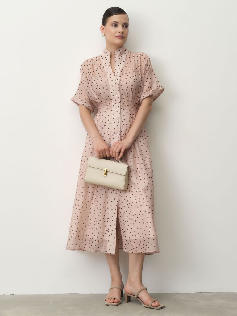 Платье из тенселя в пудровом оттенке с деликатным горошком — это воплощение лёгкости, романтики и утончённого стиля. Лёгкий пастельный цвет придаёт образу мягкость и нежность, а классический принт «в горошек» добавляет игривого шарма и винтажного очарования. Пудровый оттенок — нежный, благородный и универсальный. Он подходит к любой внешности и легко комбинируется с базовыми цветами Принт «горох» создаёт визуальный ритм и добавляет ретро-нотку, но при этом сохраняет современность Такая модель подойдёт как для повседневной носки, так и для особых случаев, когда хочется выглядеть безупречно, не теряя ощущения комфорта.Этот материал славится своими уникальными качествами:Экологичность: производство тенселя безопасно для природыГладкость и мягкость: ощущается как шелк, но при этом дышит, как хлопокТерморегуляция: ткань отлично пропускает воздух и сохраняет ощущение прохладыПлатье универсально в стилизации:В прохладное время — дополните легким кардиганом, джинсовкой или жакетомС ремнём, соломенной сумкой и шляпой — идеальный образ для отдыхаС кедами или балетками — в стиле casualС босоножками или мюлями — для романтичного летнего образаРазмерная сетка
