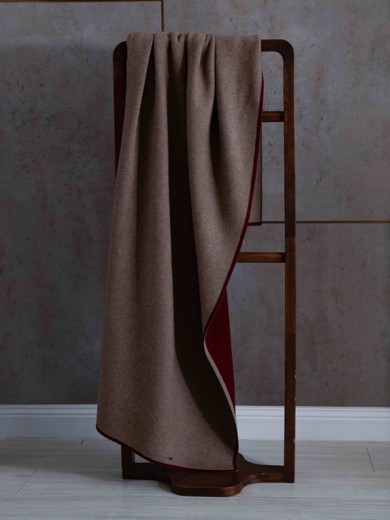 Плед из кашемира 39060 капучино-бургунди