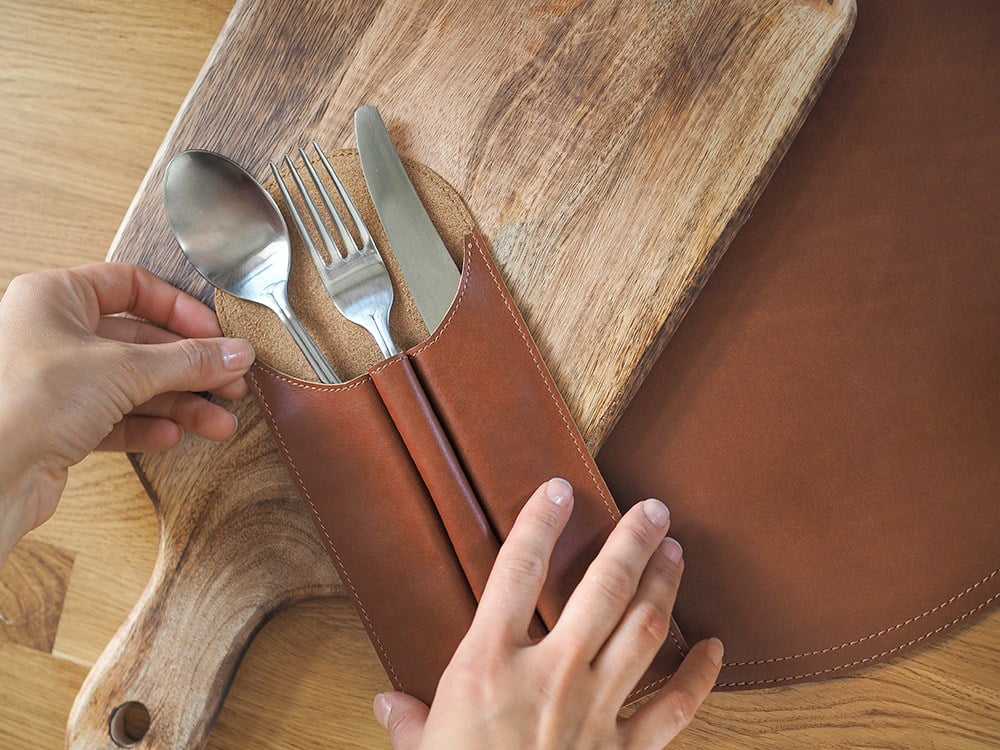 Wave — чехол для столовых приборов из натуральной кожи.