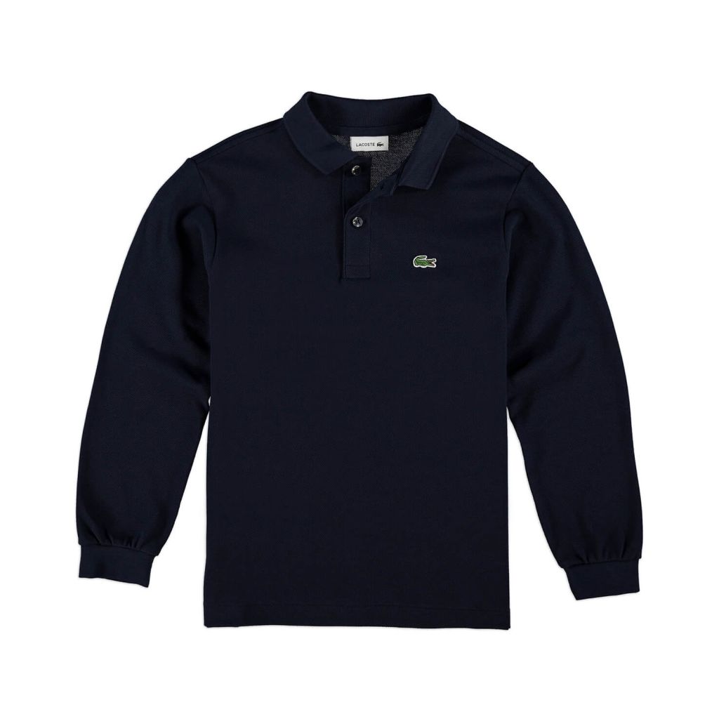 Рубашка-поло Petit Piqué с длинным рукавом \ Воротник-поло на двух пуговицах \ Двухслойный однотонный хлопковый пти-пике \ Отделка в рубчик на воротнике и браслетах \ Обычная посадка \ Вышитая аппликация из зеленой крокодиловой кожи на груди \ Материал: