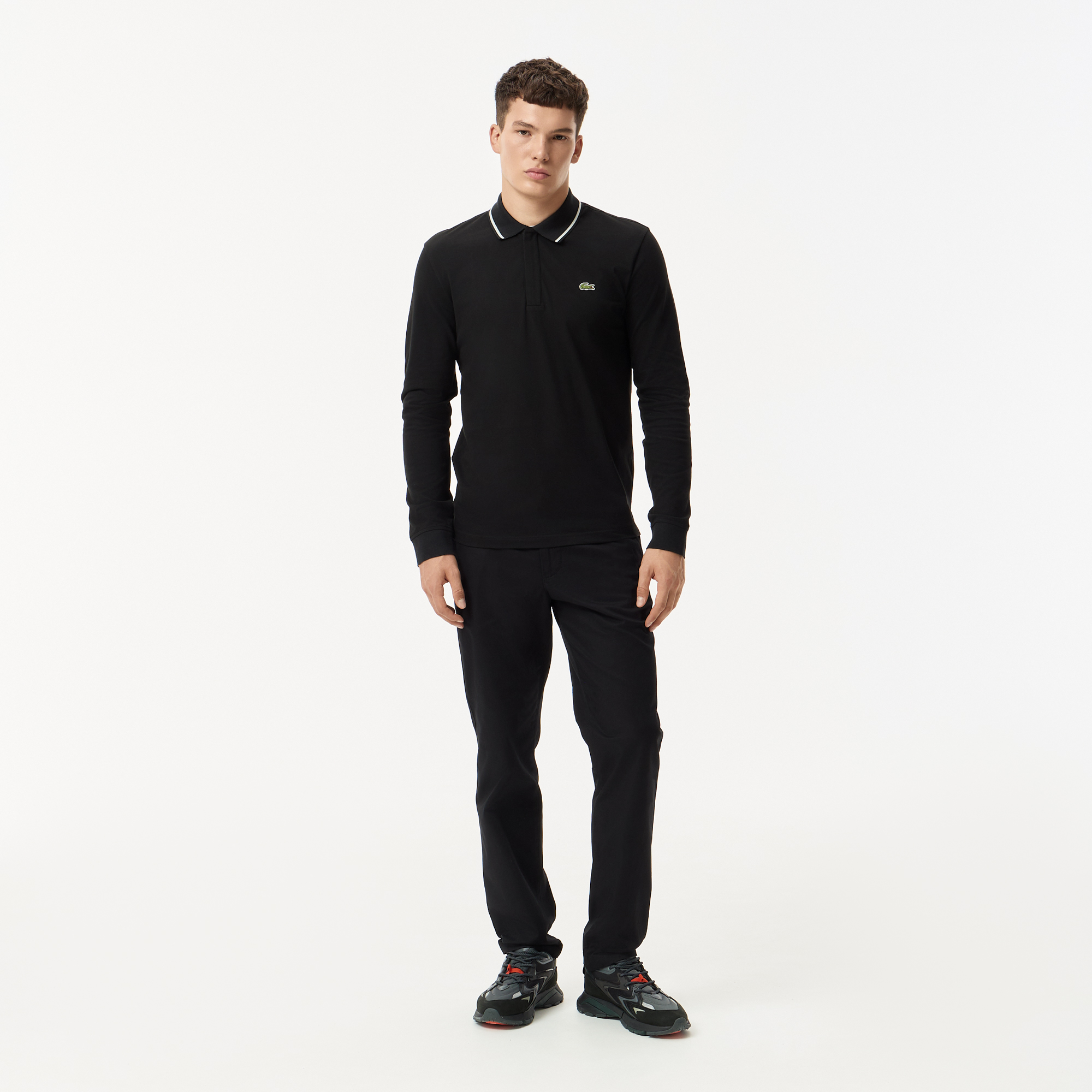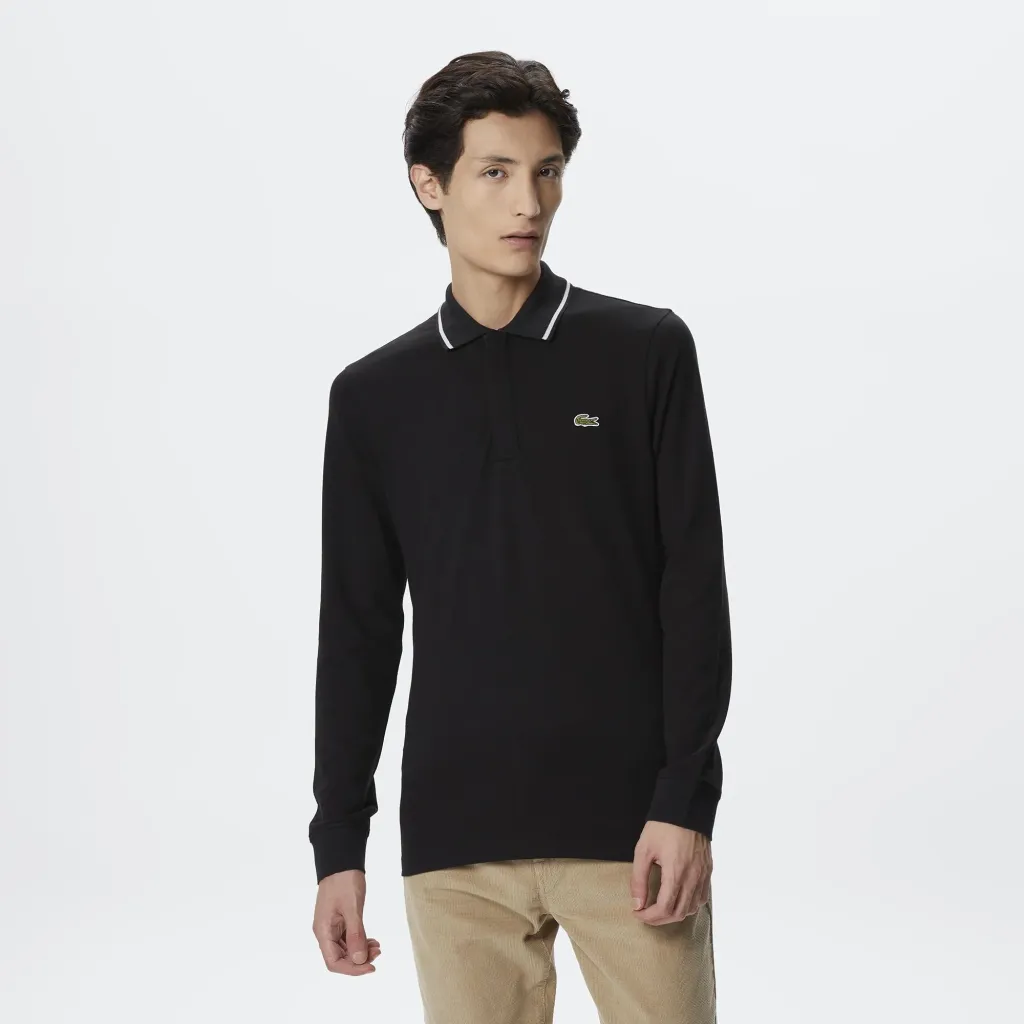 Воротник-поло с контрастными полосами;\Скрытые пуговицы на планке;\Длинные рукава;\Логотип на груди\Материал: 94% хлопок 6% эластан