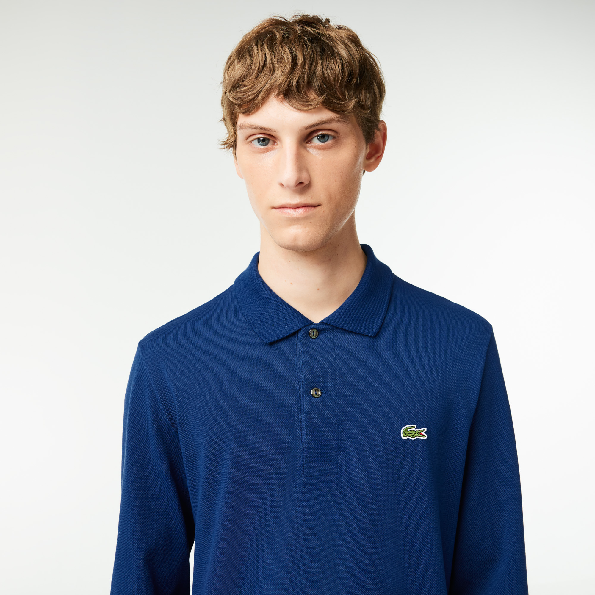 Рубашка поло классического кроя с длинными рукавами L.12.12 \ Фирменный трикотаж Heather petit piqué от Lacoste \ Воротник и рукава в рубчик \ Классическая посадка, удобный крой и рукава \ Пуговицы из натурального перламутра \ Вышитый логотип на груди \ И