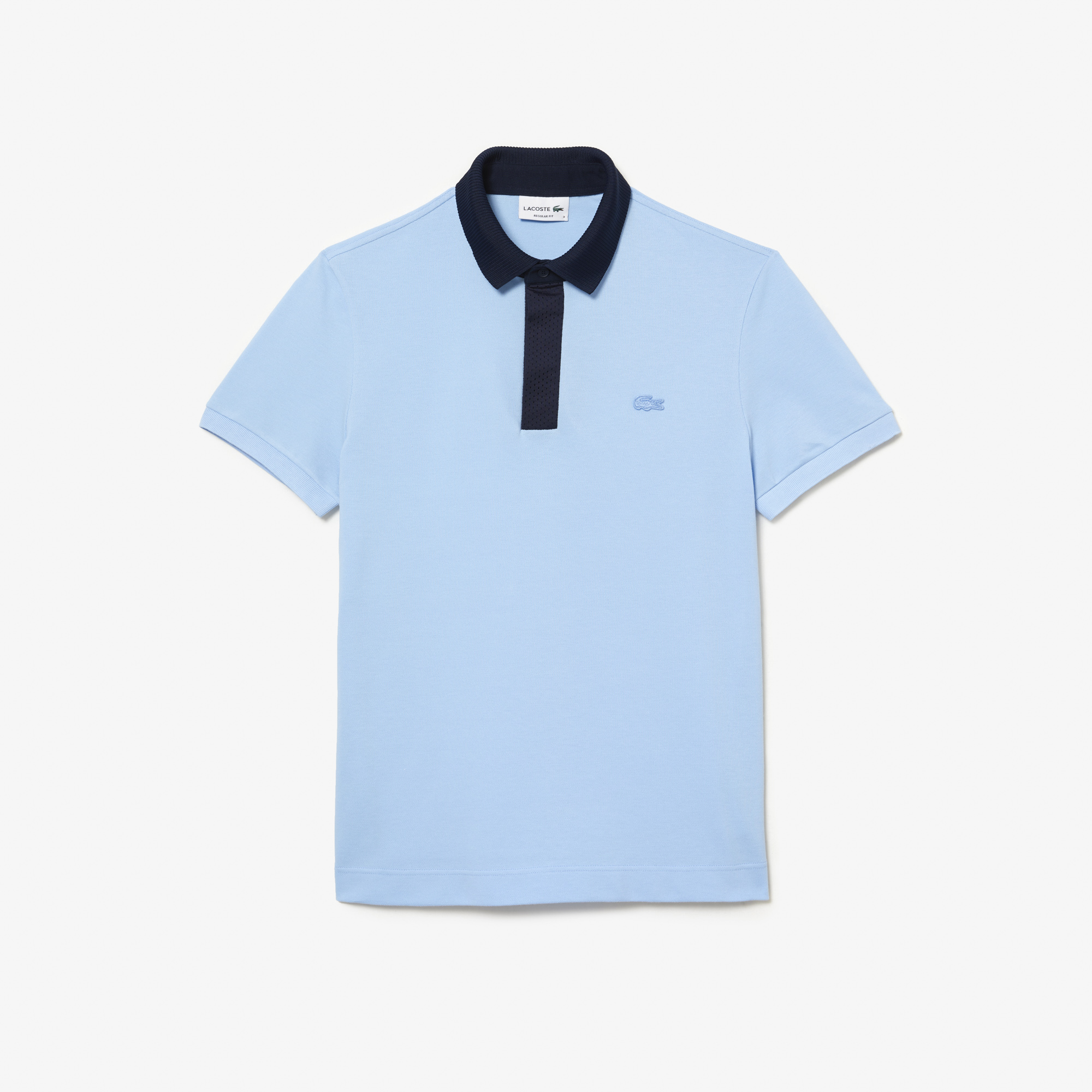 Органический хлопок;\Контрастная планка с потайными пуговицами;\Воротник и манжеты в рубчик;\Вышитый логотип Lacoste в тон изделия\Материал: 96% хлопок 4% эластан